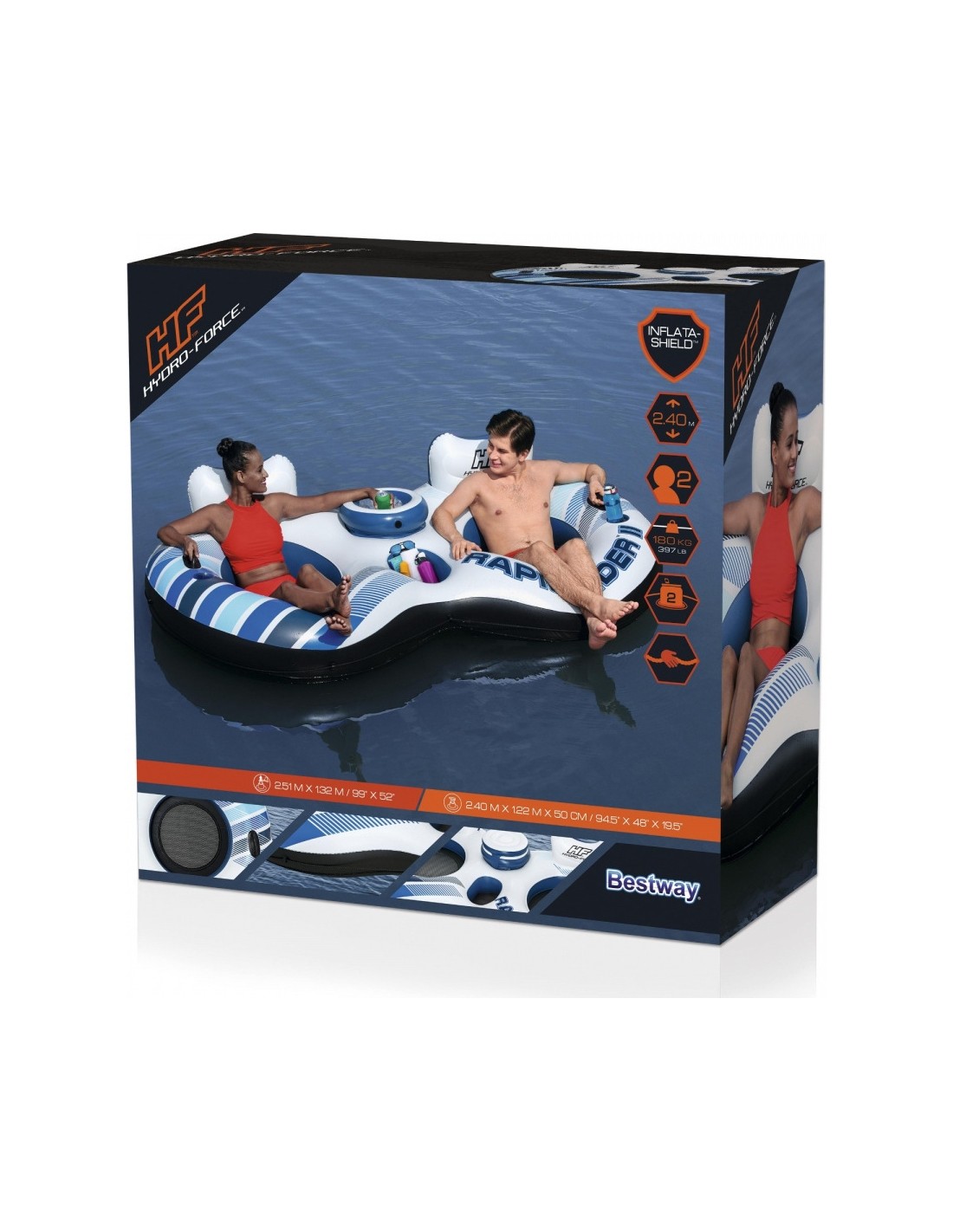 Dmuchany podwójny materac marki Bestway to idealny wybór na słoneczne dni spędzone na plaży oraz basenie. Materac został wykonany z wysokiej jakości winylu, dzięki czemu jest bardzo wytrzymałe. Dolna siatka utrzymuje chłód, a wbudowane oparcia zapewnią komfort podczas wypoczynku. Dużym atutem materaca jest fakt posiadania dwóch miejsc, stabilnych rączek ułatwiających korzystanie z materaca oraz wbudowane dwie podstawki na napoje.