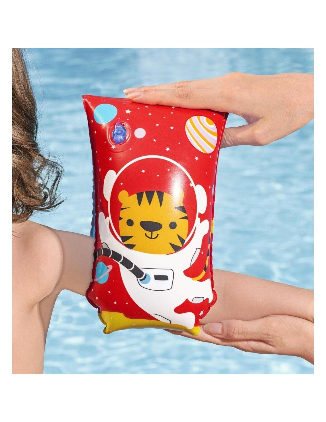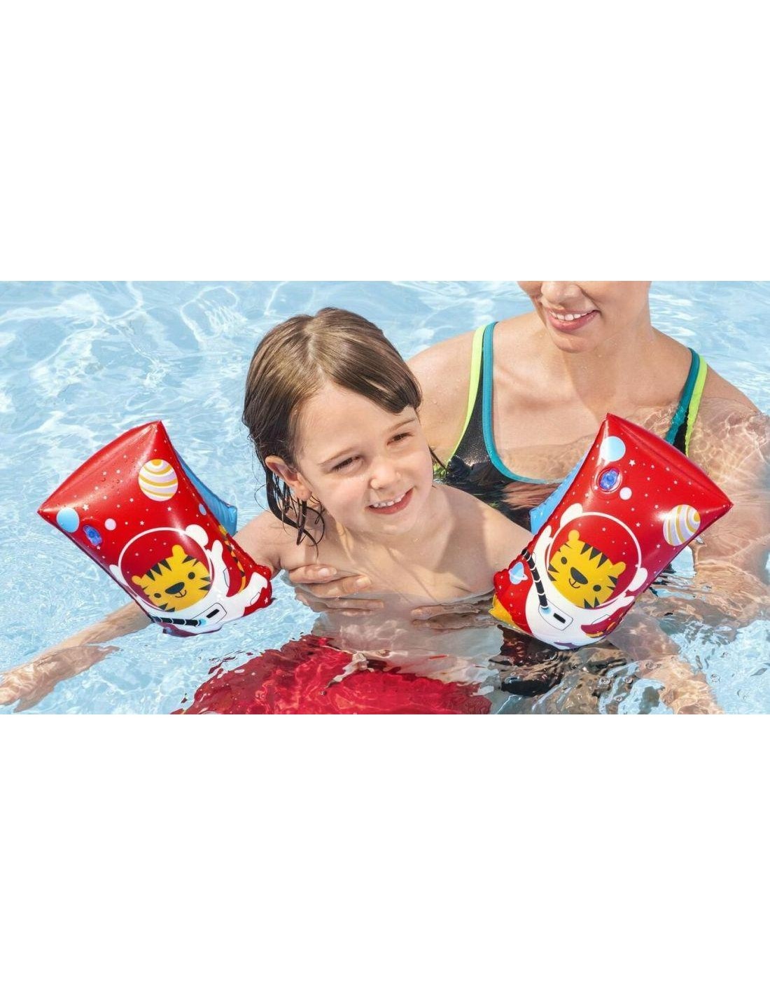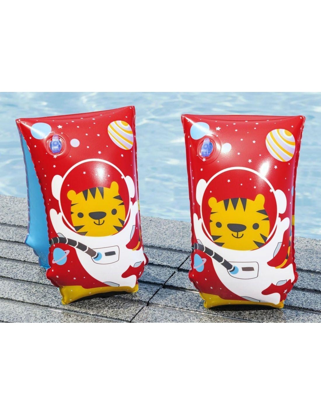 Maluch będzie mógł cieszyć się pływaniem wraz ze swoim ulubionym zwierzątkiem, ponieważ pływaczki mają nadruk z tygrysami kosmonautami. Rękawki posiadają 2 niezależne komory powietrzne oraz zawory bezpieczeństwa.