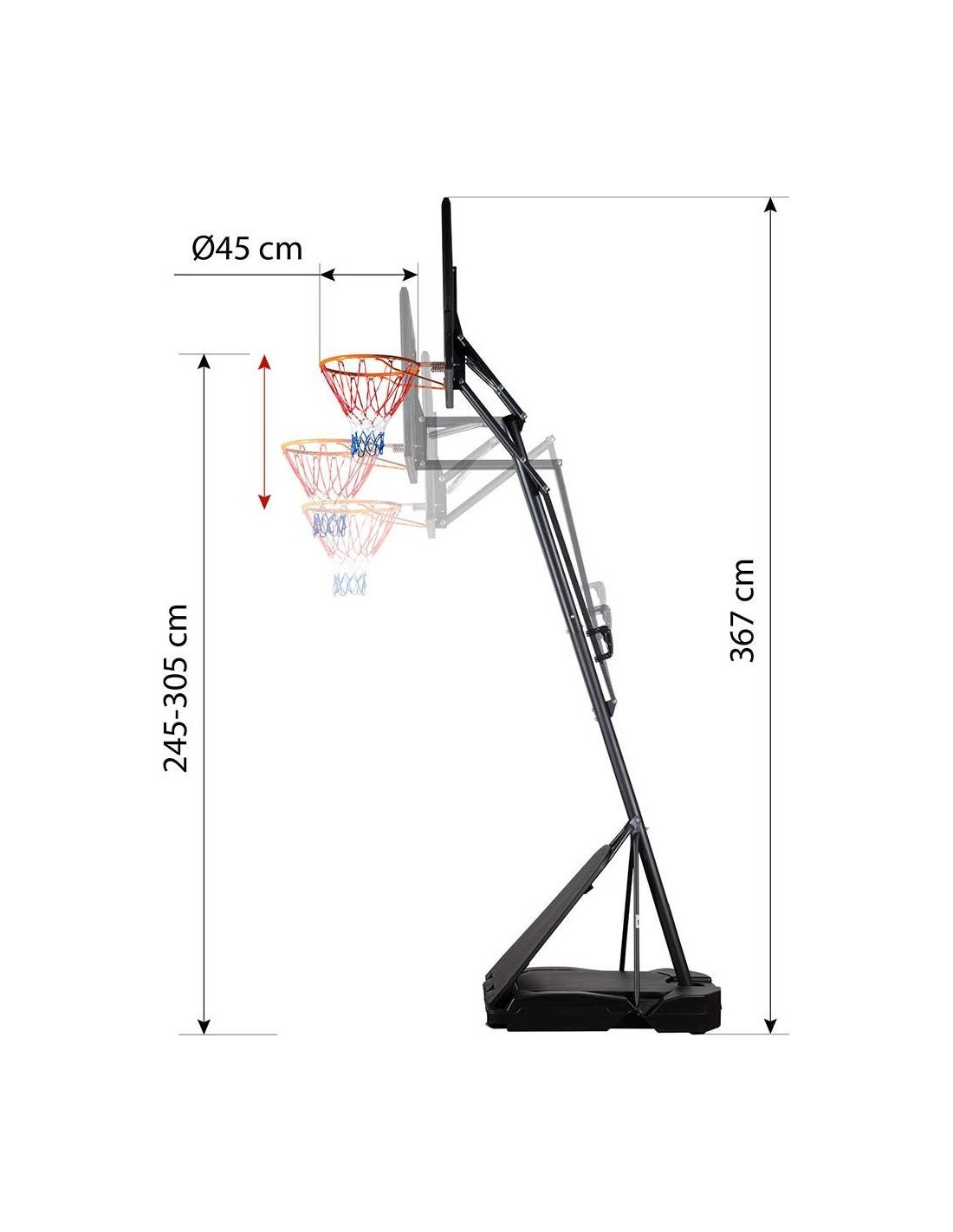 Discover the real pleasure of playing basketball with our revolutionary basket ZDK520 by NILS! Our basketball basket is a perfect combination of durability, functionality and stylish design. It was created to provide you with an unforgettable experience on the pitch and take your game to a new level. ZDK520 is made of high-quality, durable materials that ensure reliability and durability, even with intensive use. The robust construction and weather resistance make our bin ideal for both indoor and outdoor use. Thanks to advanced height adjustment mechanisms, the basket perfectly adapts to your needs. Whether you're a novice player or a seasoned champion, our basket gives you the perfect setting to maximize your potential. We haven't forgotten about aesthetics either! Our basket is characterized by an elegant design that fits perfectly into any space. Clean lines, modern details and careful workmanship make our basket both a sporting tool and a stylish decorative element. Trust our basketball hoop and discover the joy and excitement of playing basketball on a whole new level. Get ready for unforgettable moments on the pitch and conquer the hearts of the audience with your amazing dunks and accuracy of shots. Choose NILS brand quality! Specification: Total height: 3.07 - 3.67 m Rim height: 2.45 - 3.05 m Height adjustment: 5 levels every 15 cm Hoop diameter: 45 cm material: PVC, steel, polypropylene Board dimensions: 110 x 75 cm Base dimensions: 113 x 73 cm Base capacity: 59 kg Base filling: water + sand Marks: Not intended for commercial use Guarantee 24 months Certificates, standards: CE