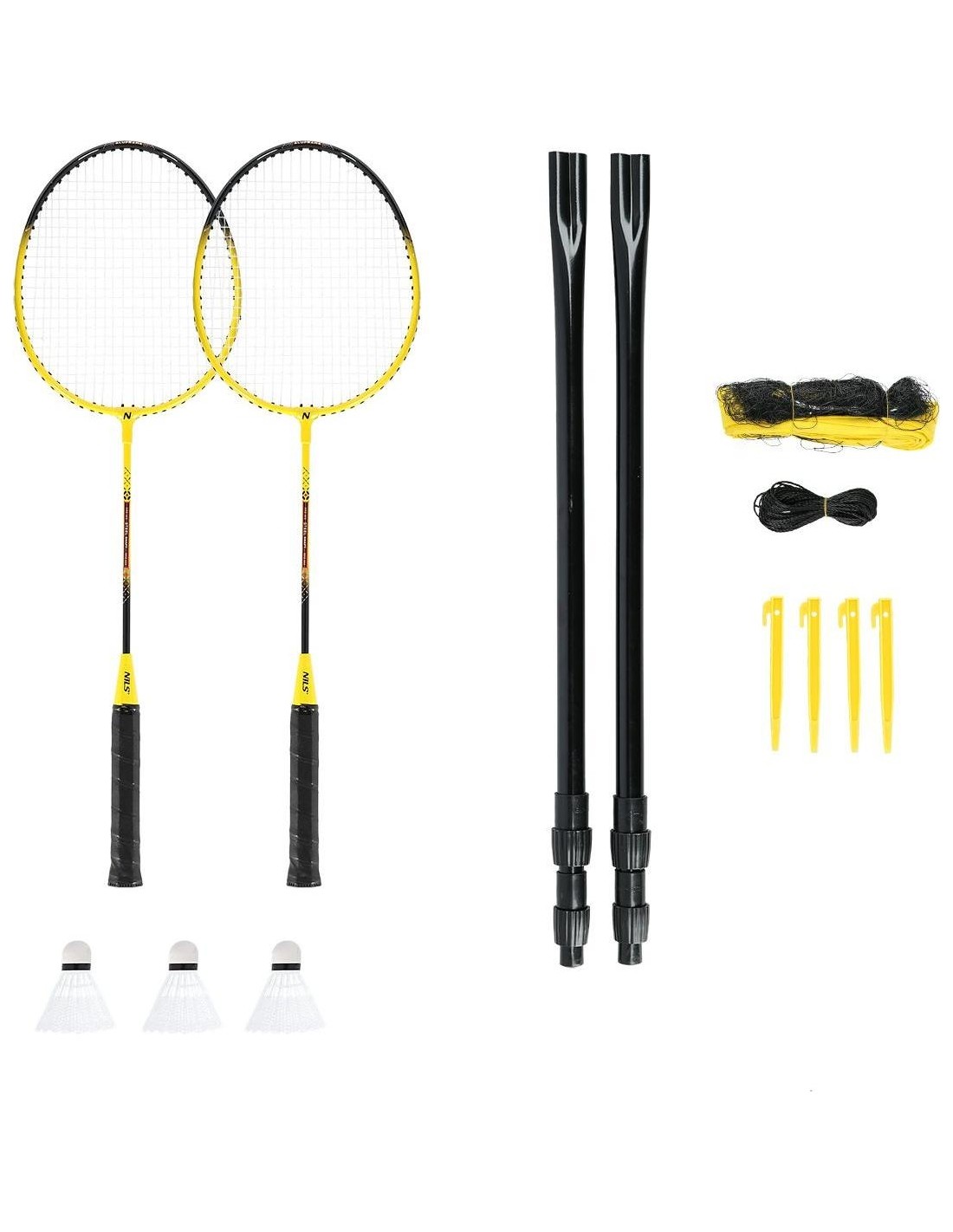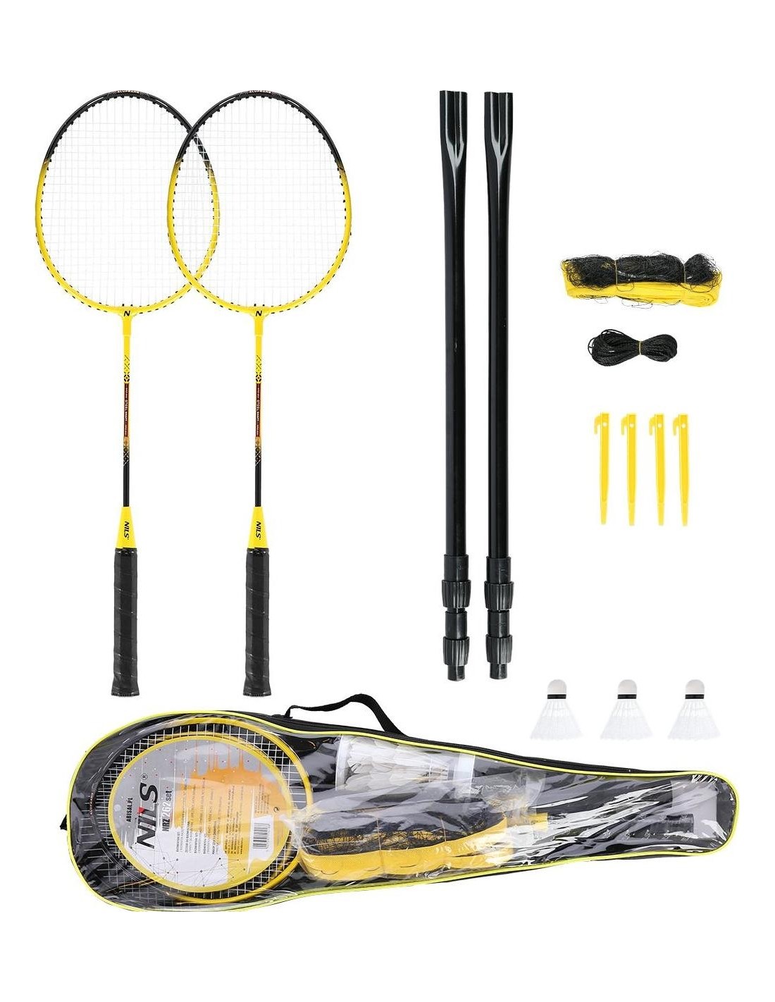 Zestaw rakiet do badmintona NRZ262 NILS, przeznaczony jest dla osób średnio zaawansowanych. Stalowo-aluminiowa konstrukcja, w znacznym stopniu poprawia stabilność i wytrzymałość rakiety. Kompozycja użytych materiałów, wpływa także na lekkość i elastyczność rakiety, co ma bezpośredni wpływ, na jakość i komfort gry. Wyjątkowo smukły kształt rakiet NRZ262, pozwala zredukować opory powietrza, a co za tym idzie wzrasta ogólna moc i wydajność gry. W skład zestawu wchodzą 2 rakiety, zestaw 3 lotek, 2 składane słupki i nylonowa siatka, dzięki czemu użytkownik posiada wszystko, czego potrzebuje, żeby rozpocząć trening. Dodatkowo, zestaw zapakowany jest w pokrowiec, co znacząco ułatwia transport. Specyfikacja: Materiał ramy: aluminium Materiał trzonu: stal Długość: 66 cm Waga: 100 g Naciąg główny: 8-9 kg (18-20 lbs) Naciąg poprzeczny: 8-9 kg (18-20 lbs) Grubość rączki: G1 (80 mm) W skład zestawu wchodzi: Rakieta: 2 szt. Siatka: nylon. Składane słupki: 2 szt. Lotka: 3 szt. Pokrowiec: pełny Lotka: Materiał bazy: EVA Materiał koszyka: kacze pióra Siatka: Wymiary: 6000 x 600 mm Kije: Średnica: 25 mm Materiał: stal Uwagi: Nie przeznaczone do użytku komercyjnego Gwarancja 24 miesiące - gwarancja nie obejmuje naciągu