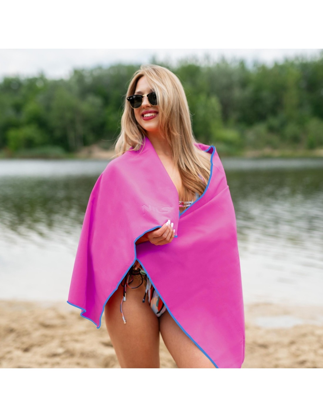 Ręcznik z mikrofibry Nils Camp NCR11 różowo-niebieski, 140x70