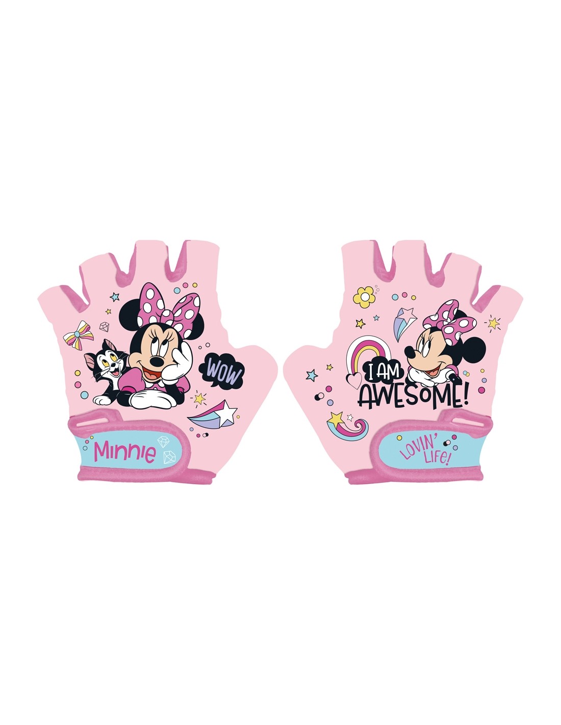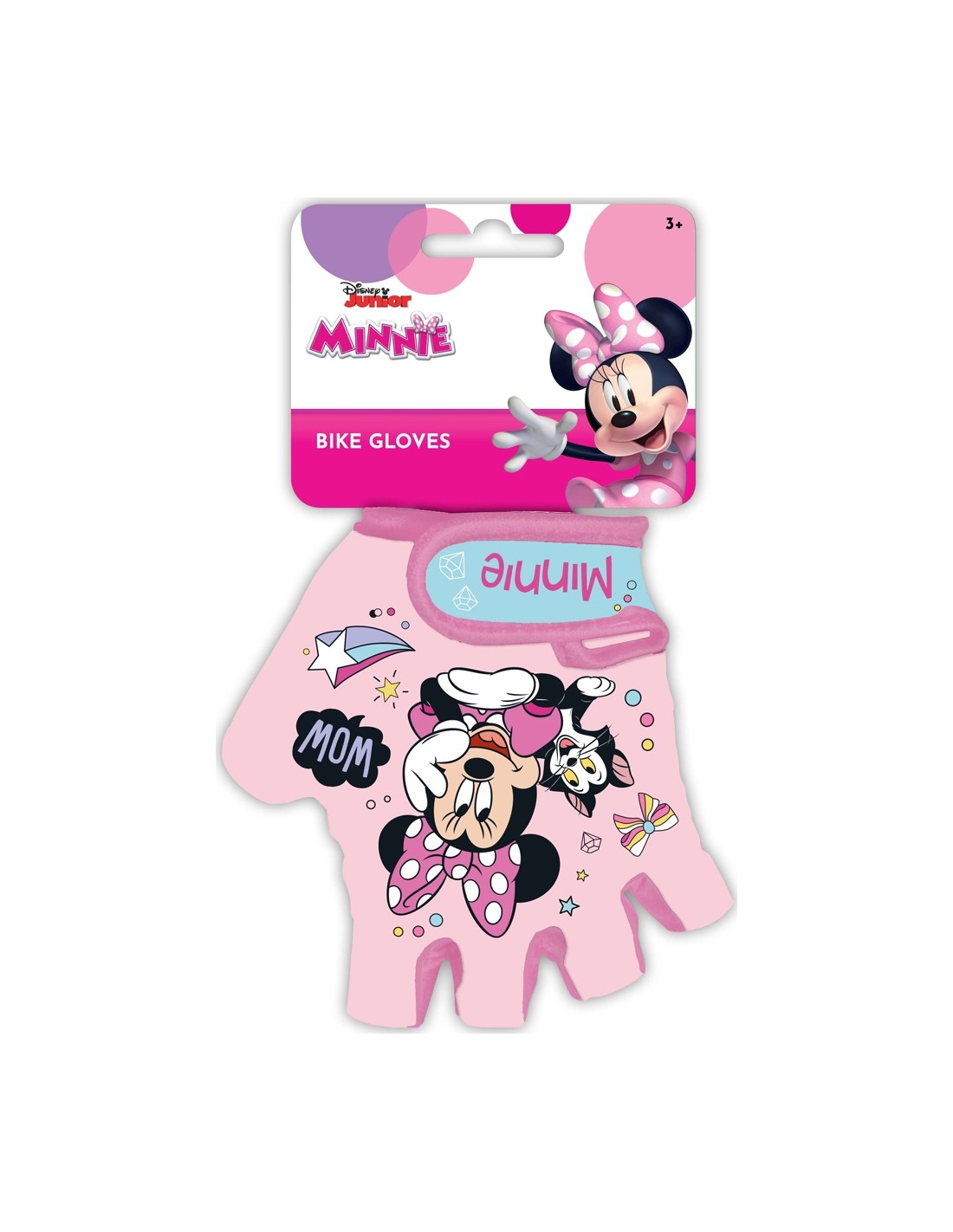 Dviračio pirštinės pagamintos iš patvarių medžiagų ir spalvingos spaudos, papuoštos mėgstamų "Disney" animacinių filmų personažais. Pirštinės turi sulimpančius ("velcro") dirželius. Pirštinės apačia apsiūta specialia medžiaga, kuri gerai amortizuoja ir leidžia vaikui saugiai laikyti vairą.