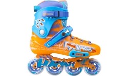 Rolki Inline Skates Baud BD276 to bardzo wytrzymałe łyżworolki, w których zastosowano tzw. rockering "bananowy" (mniejsza średnica kółek 1&4) dla zwiększenia zwrotności, kontroli i równowagi. Takie ustawienie poprawia transfer energii i ułatwia wykonywanie trików slalomowych. Aby zapewnić płynną i gładką jazdę Inline Skates Baud BD276 wyposażone zostały w aluminiowe ramy oraz precyzyjne łożyska ABEC 7. Dodatkowym atutem jest system zapinania (sznurowanie + 2 klamry), który zapewnia pewne dopasowanie i ułatwia zakładanie i zdejmowanie łyżew.