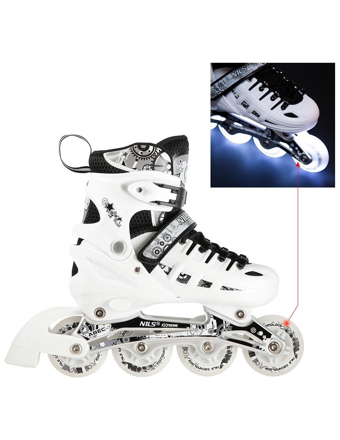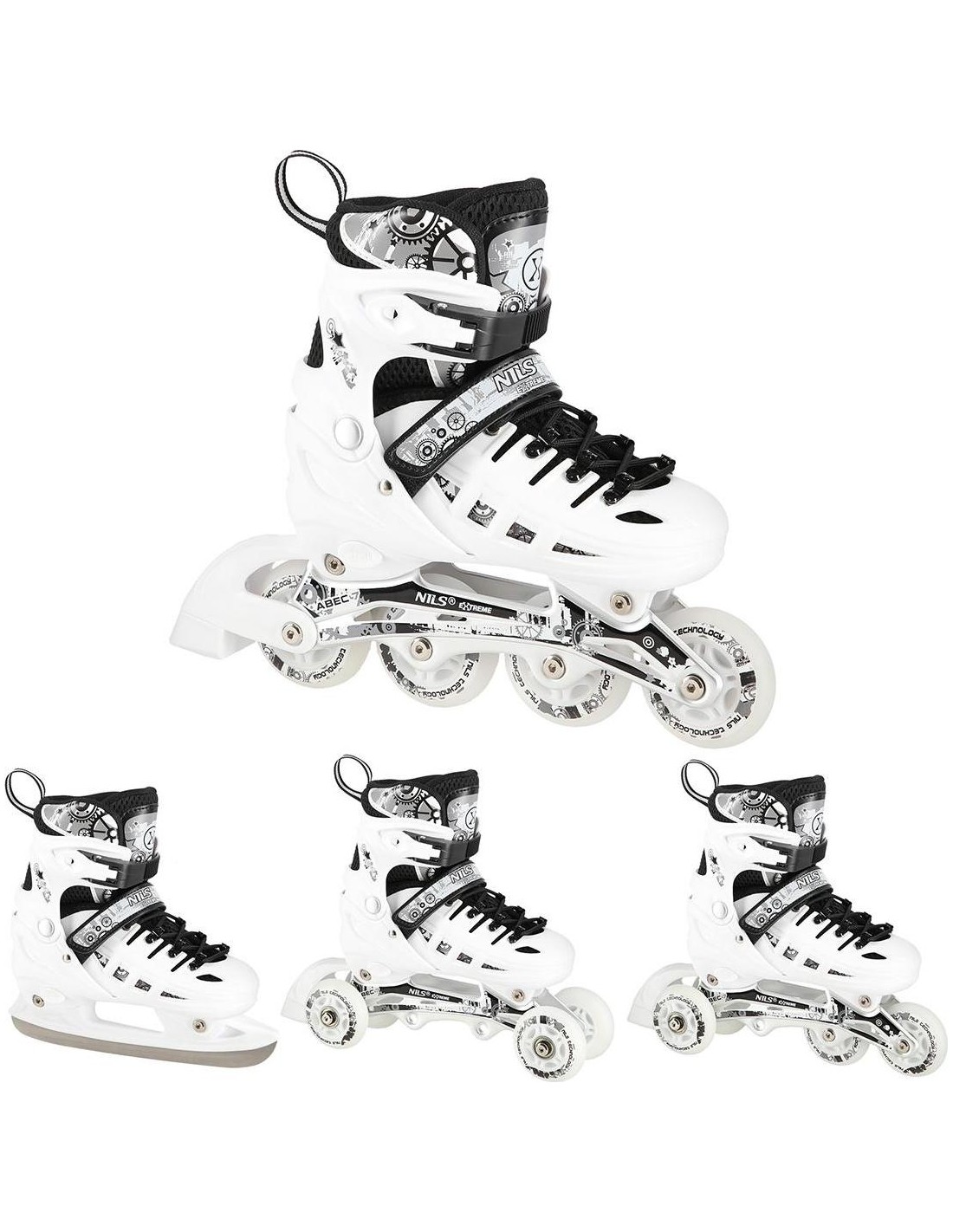 NH10905 Set Nils Extreme to rolki przeznaczone dla entuzjastów jazdy na rolkach. Produkt oferuje dwie opcje konfiguracji: łyżwy, łyżworolki, wrotki i wrotki.