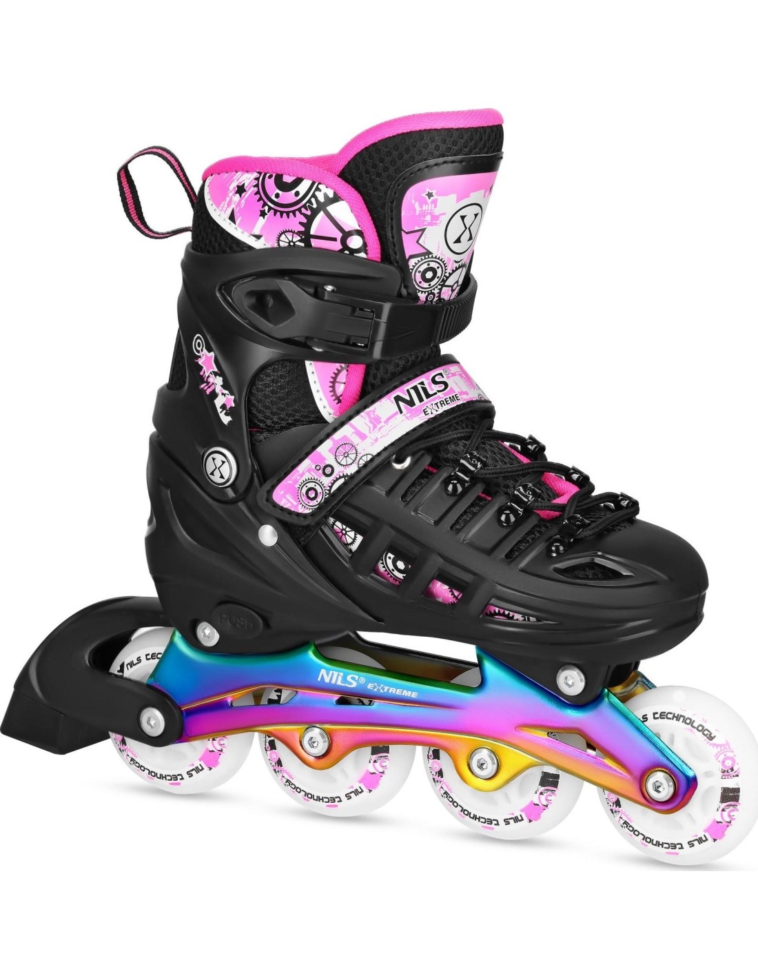 NH10905 Set Nils Extreme to rolki przeznaczone dla entuzjastów jazdy na rolkach. Produkt oferuje dwie opcje konfiguracji: łyżwy, łyżworolki, wrotki i wrotki.