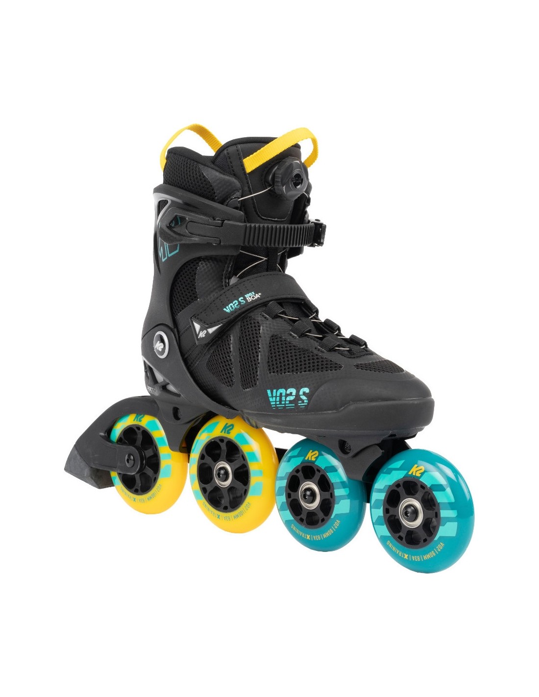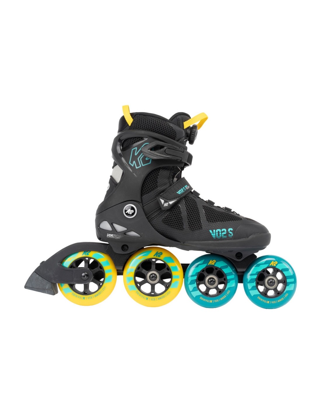 Rollerblades K2 VO2 S 100 X BOA 2022 łączą typową dla nich jednostronną ramę z 2 różnymi rozmiarami kół. Przednie dwa koła mają średnicę 90 mm, co obniża środek ciężkości, a tym samym zapewnia stabilność podczas jazdy. Tylne dwa koła o średnicy 100 mm sprawiają, że łyżworolki są szybkie, zwłaszcza na płaskich i długich drogach. A najwyższej klasy łożyska ILQ 9 Classic Plus pozwalają jeździć na łyżwach jak wiatr, nawet nie musząc się zbytnio starać!