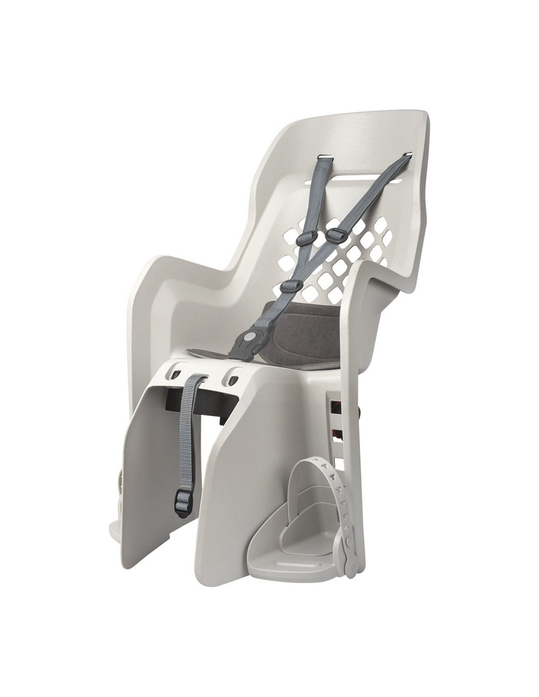 Wysokie krzesełko jest przymocowane do bagażnika. W zestawie wszystkie akcesoria potrzebne do zamocowania.