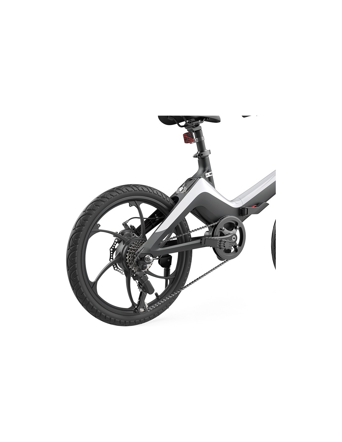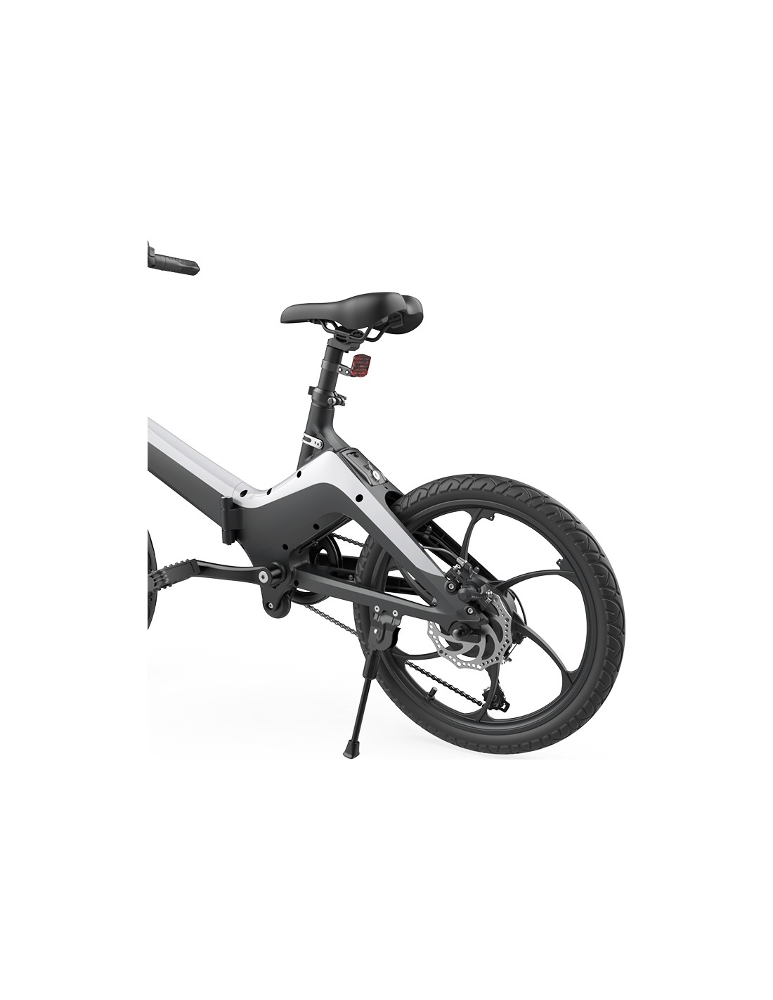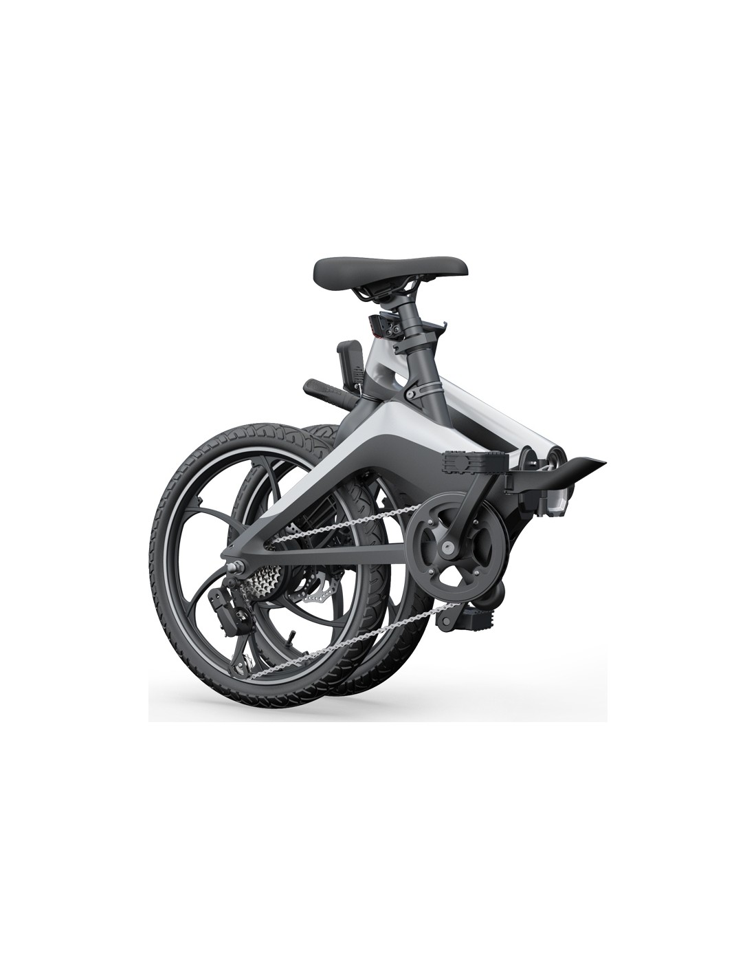 Elektrinis dviratis turi žibintus, kurie padės jaustis saugiai kelionėse tamsiuoju paros metu arba esant prastam matomumui. Žibintus lengvai įjungsite mygtuku.