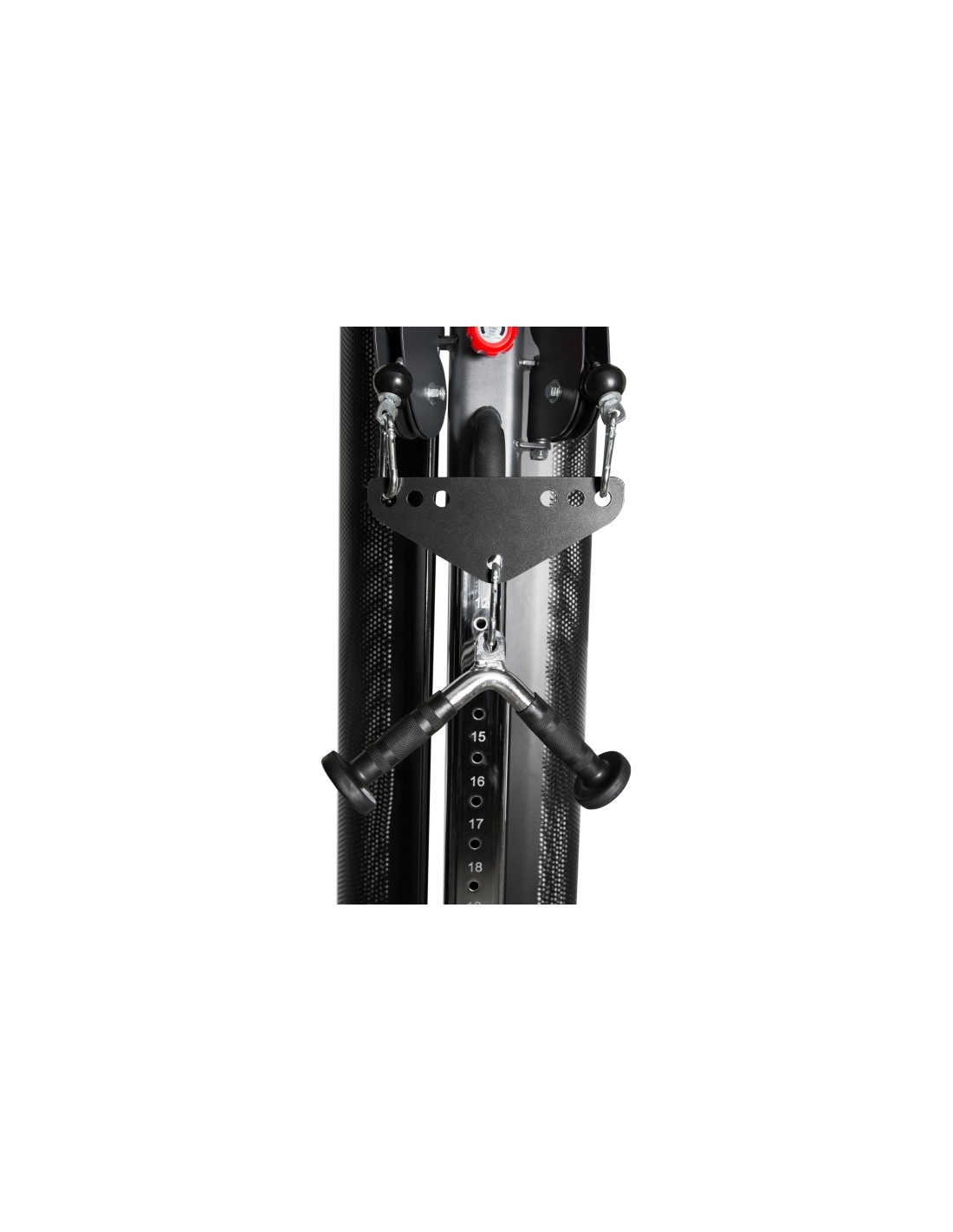 With the Newton Fitness Dual Pulley Connector you can connect 2 pulleys and use 1 handle instead of 2. This may be necessary when the 2 pulleys of a device do not rotate and you need an intermediate piece, with the Dual Pulley Connector you solve this easily.