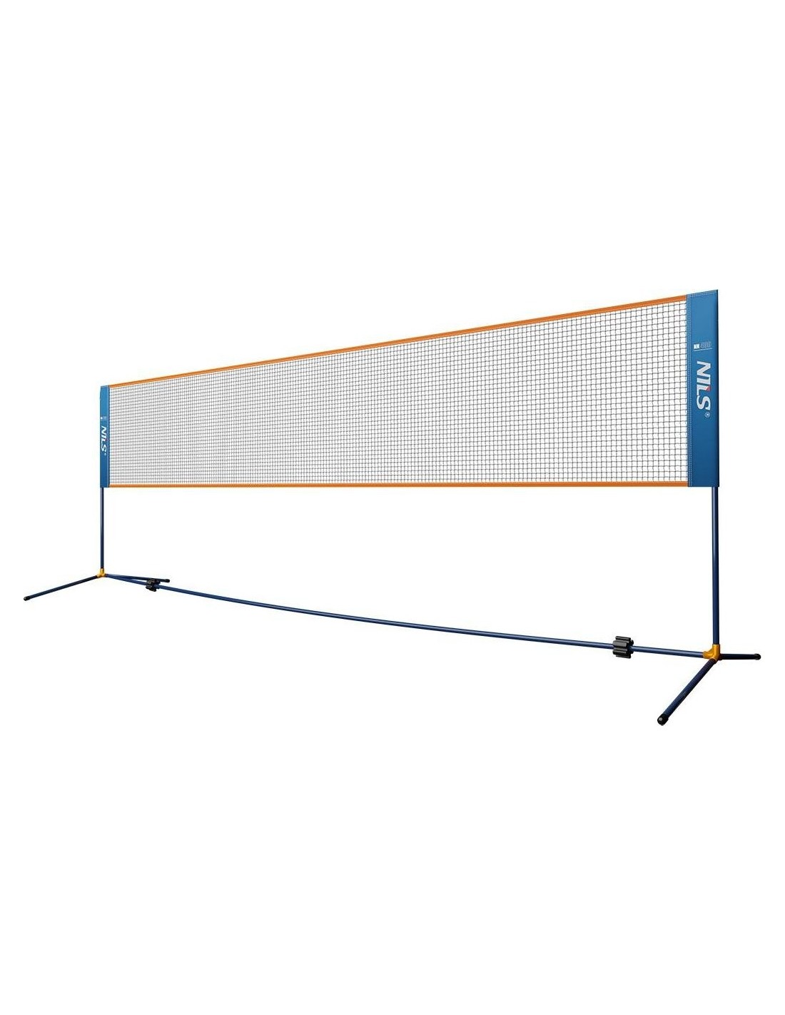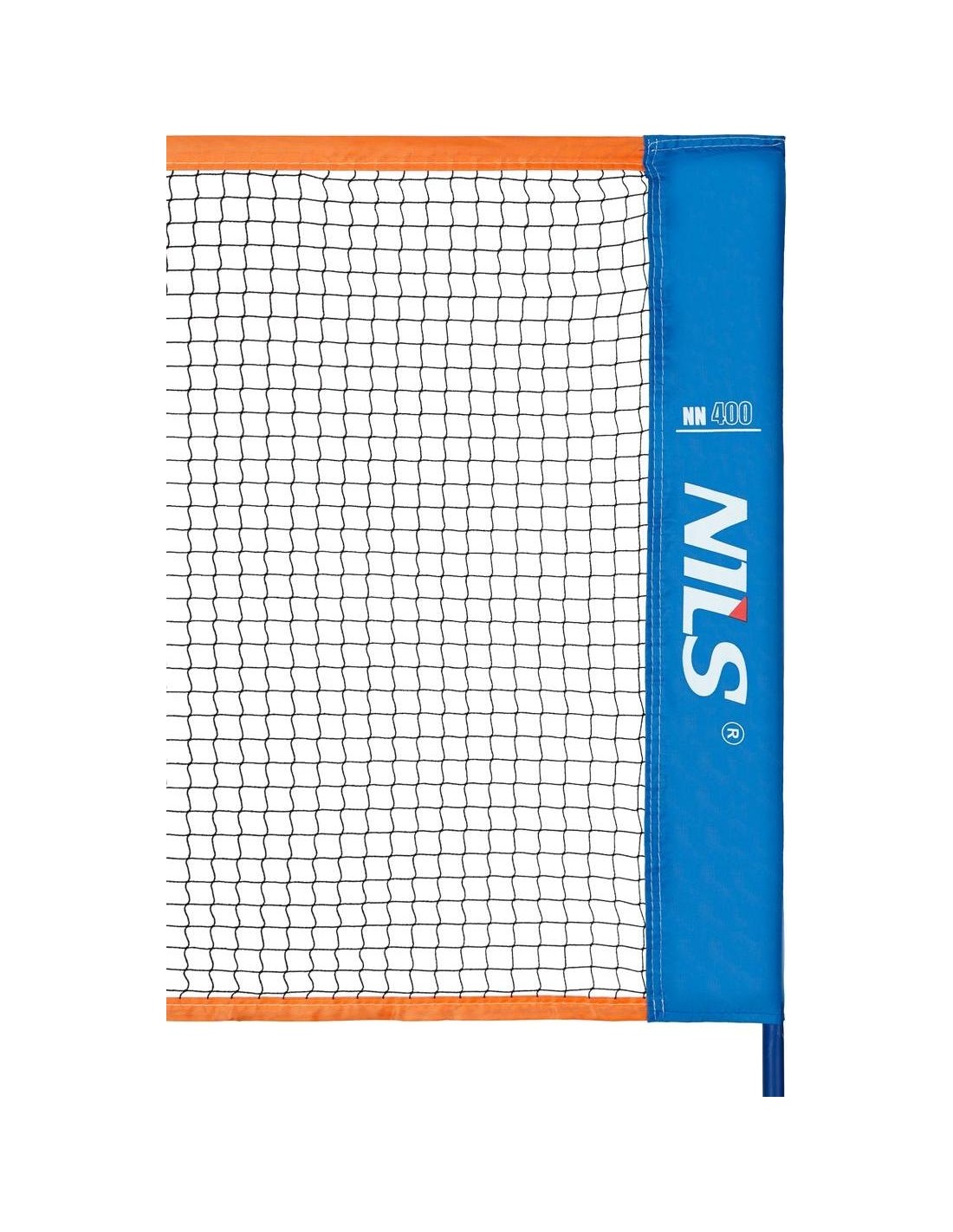 NN400 Nils, to siatka przeznaczona do rekreacyjnej gry w badmintona. Będzie świetnym dodatkiem, do wykorzystania przy klasycznych grach na świeżym powietrzu. Siatkę rozkłada i składa się w kilka minut, bez pomocy narzędzi. Dzięki środkowej poprzeczce, łączącej zewnętrzne słupki, konstrukcja jest bardzo stabilna i wytrzymała. Mocna siatka i solidny stelaż, są odporne na warunki atmosferyczne. Nie trzeba jej specjalnie mocować do podłoża (jest wolnostojąca), więc może być wykorzystywana także na hali. Specyfikacja: Wymiary: 4 m x 1.55 m Materiał: SIATKA: poliester STELAŻ: 19 mm x 1,2 mm stalowe rurki Uwagi: Nie przeznaczona do użytku komercyjnego Gwarancja 24 miesiące