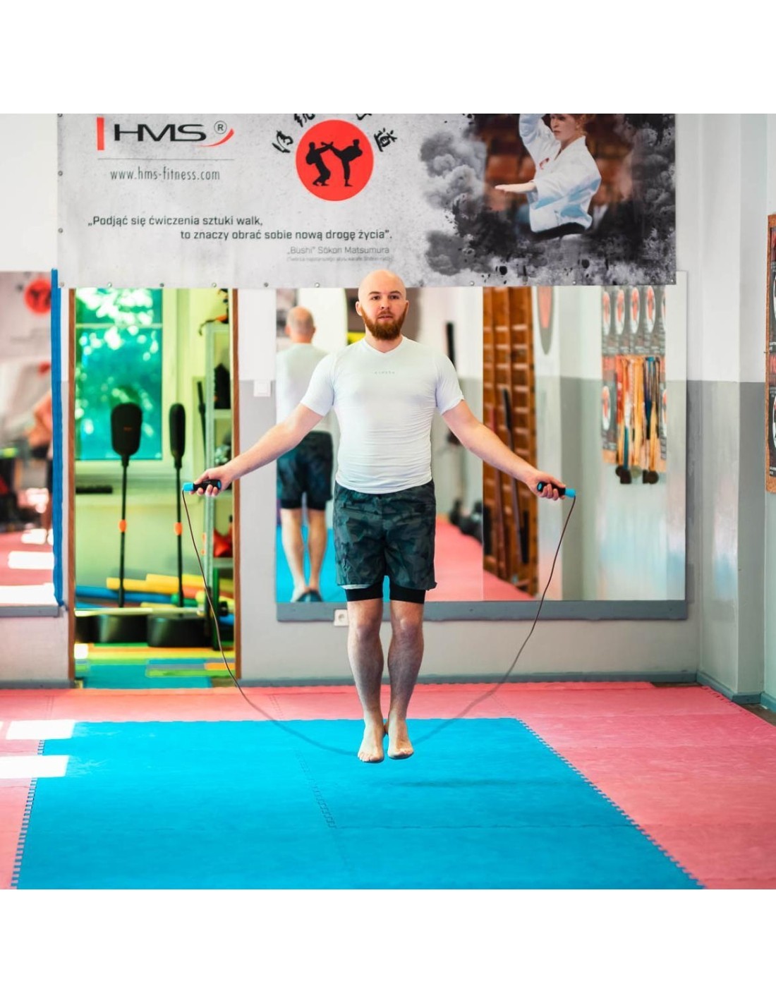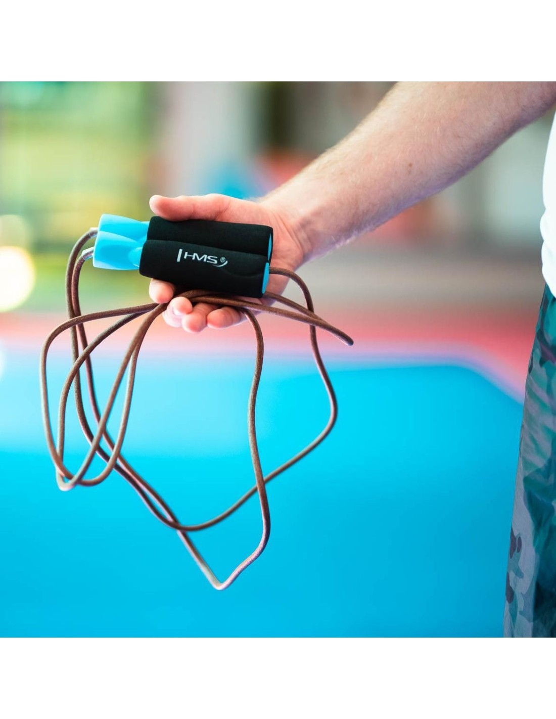 SK17 HMS to skakanka łącząca zalety nowoczesnej konstrukcji z wytrzymałością skórzanej linki. Przyrząd posiada łożyska, które poprawiają parametry treningu. Linka o długości 270cm została wykonana ze skóry wysokiej jakości, zapewniając tym samym długie i bezproblemowe użytkowanie. Wygodne, ergonomiczne rączki pokryte pianką, świetnie układają się w dłoniach, gwarantując pewny chwyt podczas całej sesji treningowej. Do zestawu dołączono dwa obciążniki.