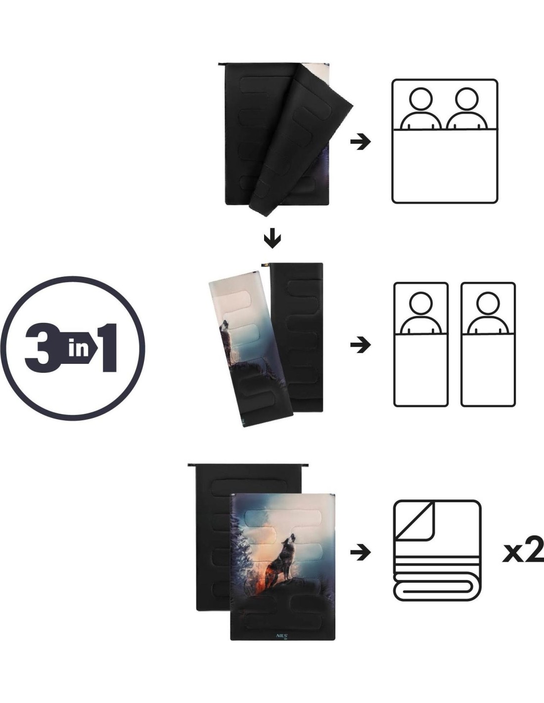 NC3601 3-in-1 DOUBLE SLEEPING BAG NILS CAMP