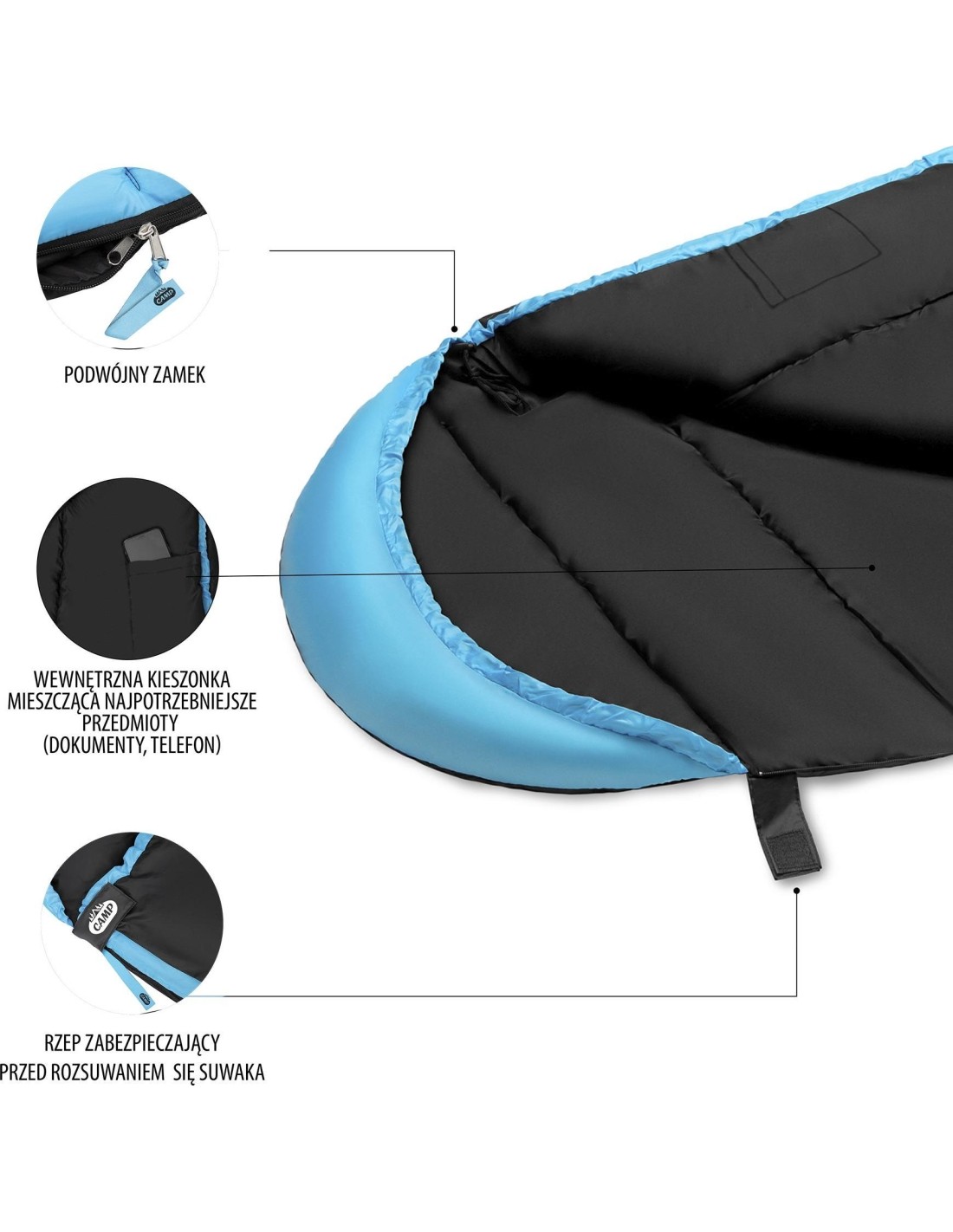 It is characterized by a very good quality and the best materials. The filling is a unique Hollow fiber technology and the outer material is a durable, modern polyester fabric. Additionally, they are covered with a coating resistant to the cold and the moisture. This results in a calm and comfort sleep, even at very low temperatures close to zero Celsius degrees. For greater comfort of use the sleeping bag is characterized by special stitching preventing the filling from dislocation. Additionally, the hood located in the upper part guarantees a stable position of the pillow due to pullers. NC2012 is fastened with a zipper, and hooks and loops placed at the end of the sleeping bag additionally protects the sleeping bag from opening. The zipper is double-sided which means you can operate it also from the inside.