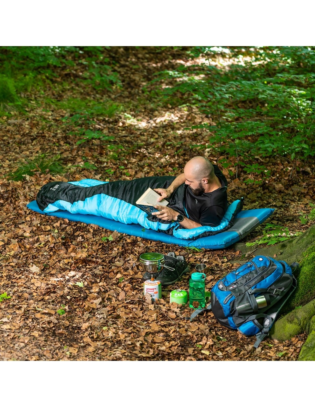 In most cases sleeping in a sleeping bag means sleeping on the ground. Hence, a great complement is a comfortable mat, preferably self-pumping one. Such original mats, in various interesting colors, are also offered under the NILS CAMP brand.