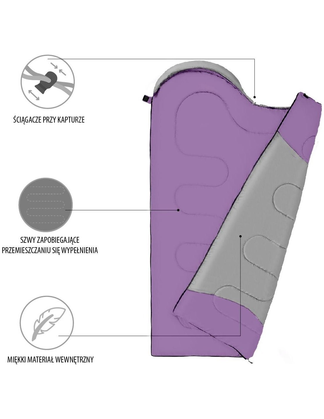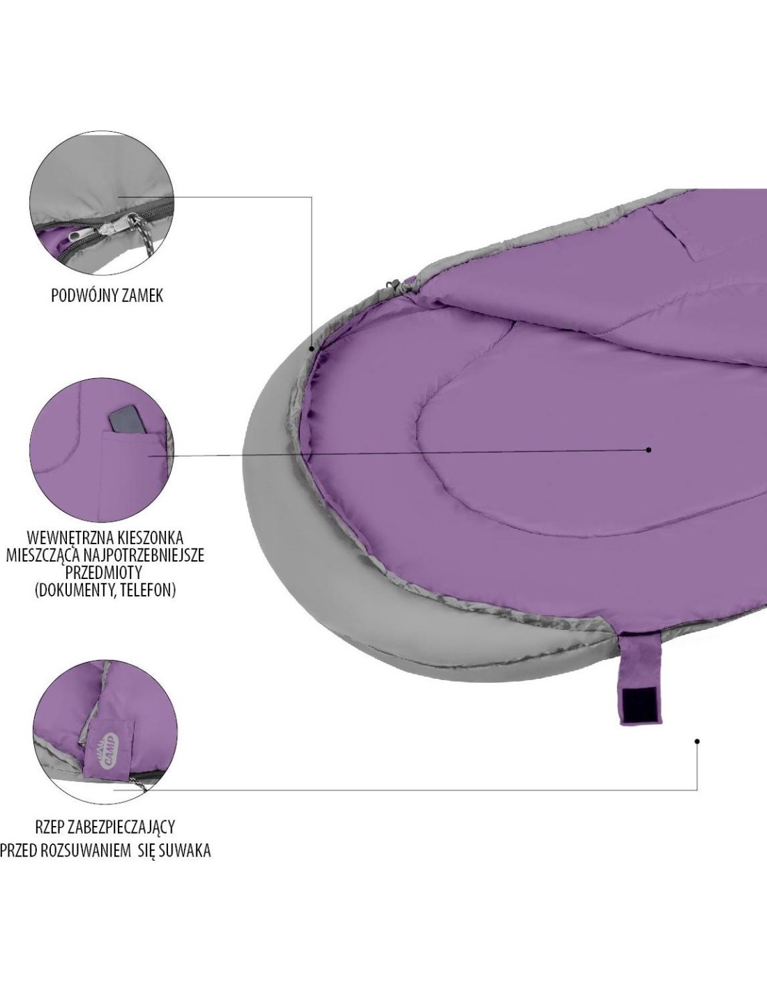 It is characterized by a very good quality and the best materials. Both the filling and the outer material are durable, modern polyester fabrics. Additionally, they are covered with a coating resistant to the cold and the moisture. This results in a calm and comfort sleep, even at very low temperatures close to zero Celsius degrees. For greater comfort of use the sleeping bag is characterized by special stitching preventing the filling from dislocation. NC2008 is fastened with a zipper, and velcro placed at the end of the sleeping bag additionally protects the sleeping bag from opening.