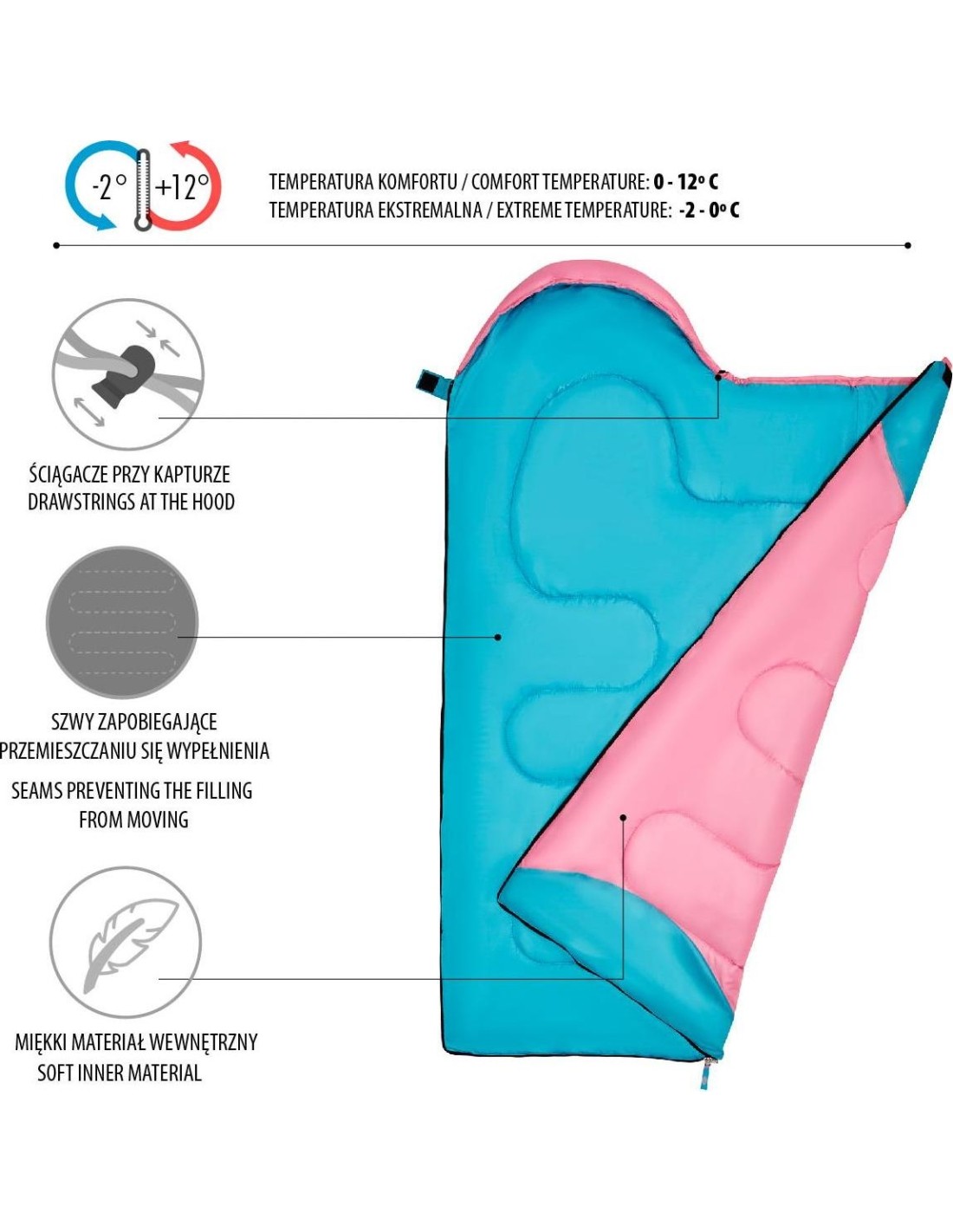 It is characterized by a very good quality and the best materials. Both the filling and the outer material are durable, modern polyester fabrics. Additionally, they are covered with a coating resistant to the cold and the moisture. This results in a calm and comfort sleep, even at very low temperatures close to zero Celsius degrees. For greater comfort of use the sleeping bag is characterized by special stitching preventing the filling from dislocation. NC2007 is fastened with a zipper, and velcro placed at the end of the sleeping bag additionally protects the sleeping bag from opening.
