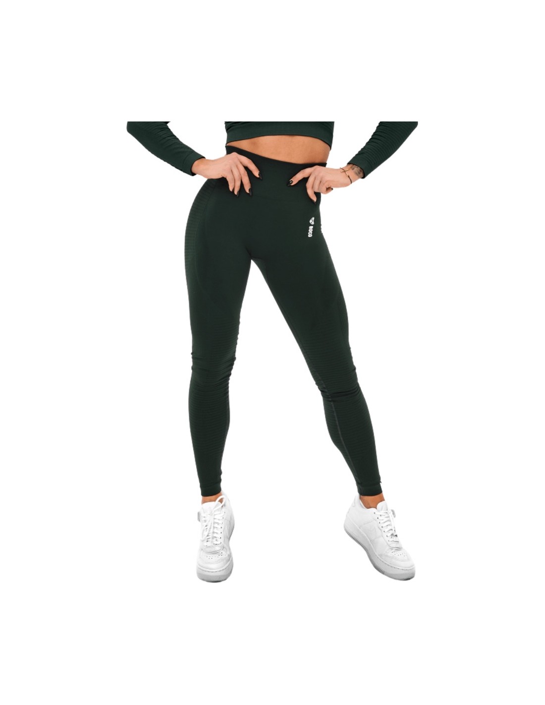 Dzięki oryginalnemu wzornictwu i doskonałym właściwościom użytkowym, Damskie legginsy Boco Wear Bottle Green Cropped staną się Twoim ulubionym elementem odzieży aktywnej. Te wysoko wyszczuplone legginsy otulają brzuch, podkreślając Twoje krągłości. Dzięki szerokiemu pasowi w talii pozostają one zawsze na swoim miejscu. Legginsy zostały wykonane w technologii seamless, która zapobiega otarciom i podrażnieniom, zapewniając Ci komfort nawet podczas najbardziej wymagających treningów. Możesz również docenić fakt, że spodnie są wykonane z unikalnej tkaniny, która pozostaje całkowicie nieprzezroczysta nawet po rozciągnięciu.