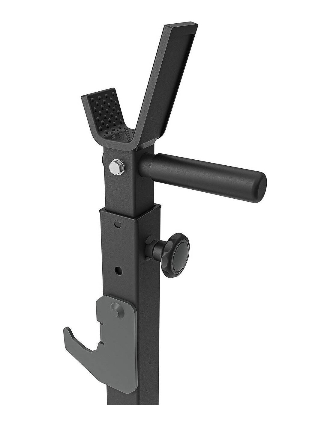Optymalny kształt dodatkowych haków na gryf sprawia, że nie będziesz mieć problemów z jego odrzuceniem, nawet przy problemach z wyciskaniem sztangi.