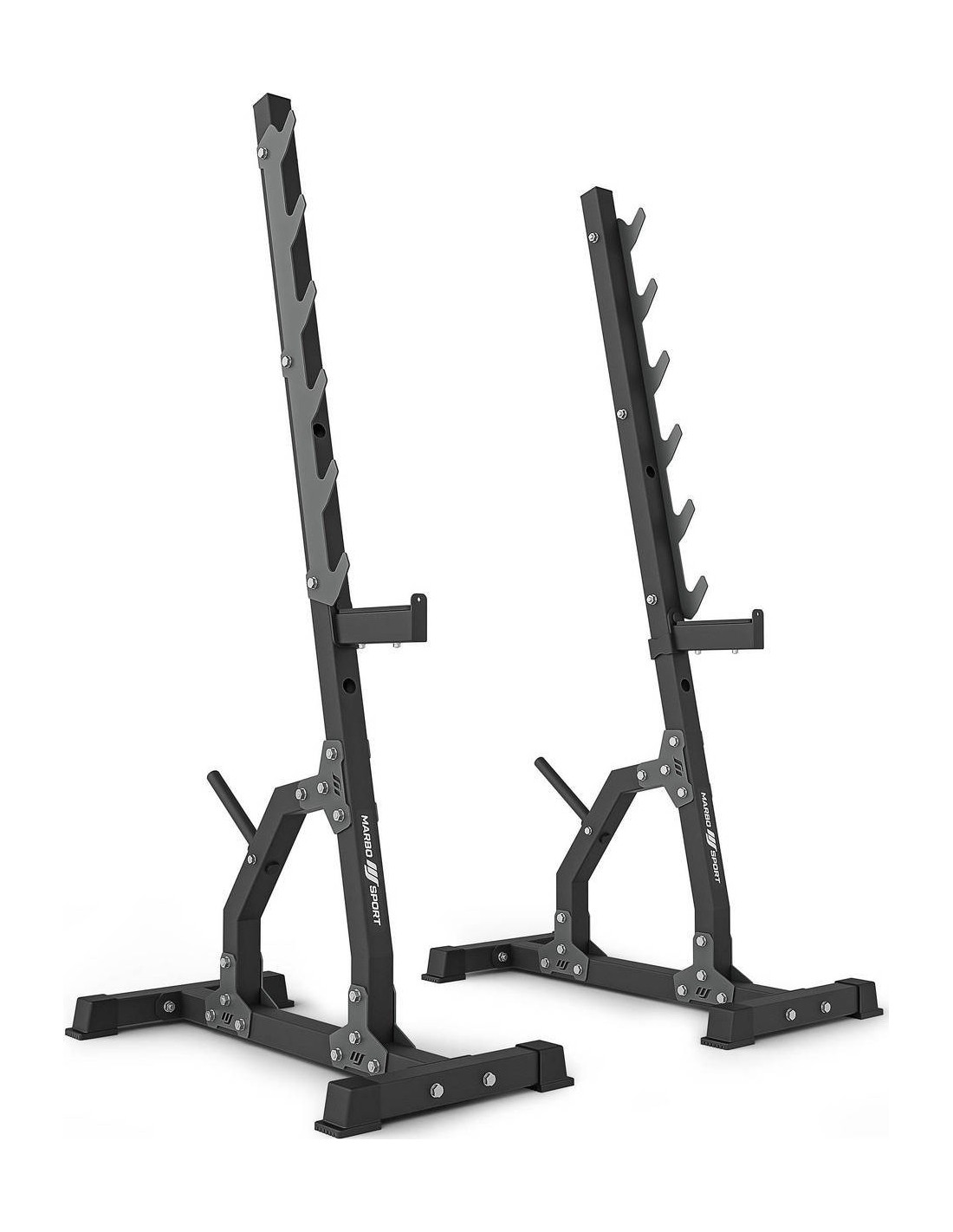 Stojaki wielopoziomowe MS-S105 2.0 od Marbo Sport stanowią wsparcie treningu ogólnego. Pozwolą bezpiecznie wykonać wiele ćwiczeń ze sztangą i zapewnią niezbędną asekurację.