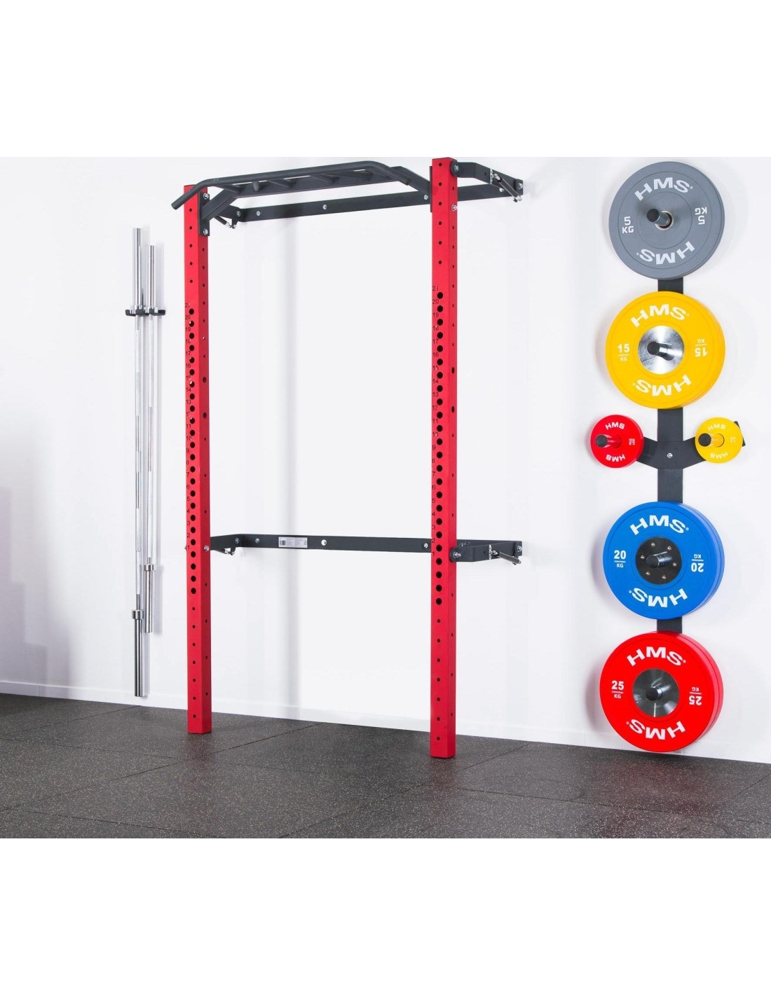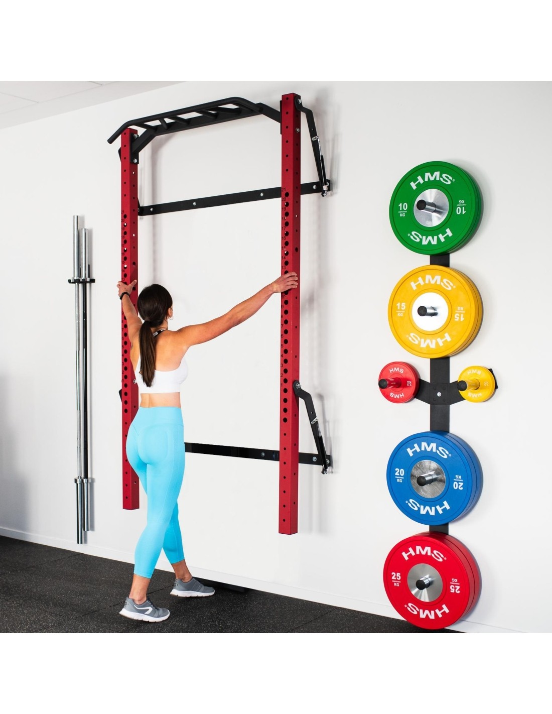 The KLT23 training cage is fixed to the wall for stability and safety. You can easily fold it up when not in use, so it doesn't take up much space. This is a huge advantage of this equipment as it can be used by people with limited training space. When folded at its deepest point, the cage only takes up 31 cm from the wall! The KLT23 from HMS is a sturdy design that will allow you to perform a wide range of exercises.