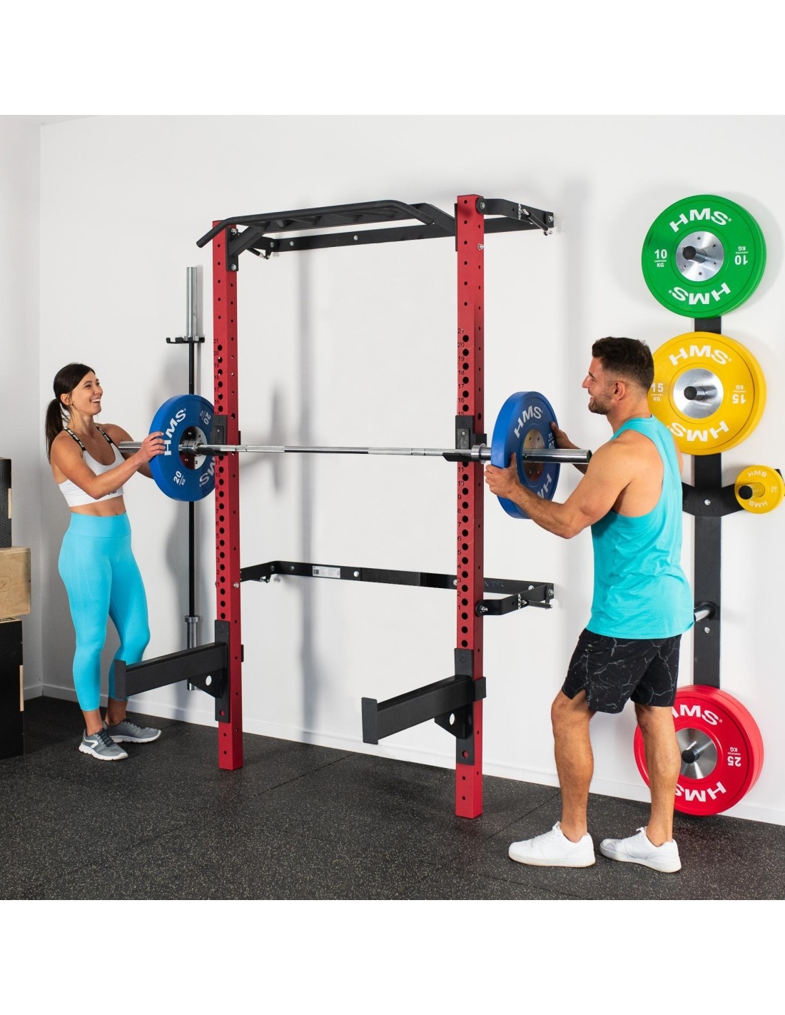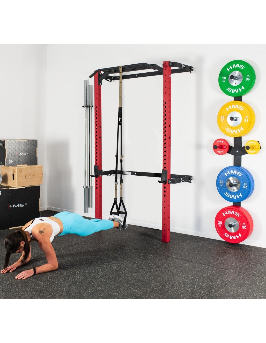 The KLT23 training cage from HMS is a piece of equipment that will satisfy the needs of strength training and fitness enthusiasts. Whether you're a beginner or advanced, you'll find everything you need for an effective and safe workout. The KLT23 will add variety to your workout routine and allow you to achieve even better results. You can also order special wall hangings for the set, which include STR28 grips and STR29 weight rack.