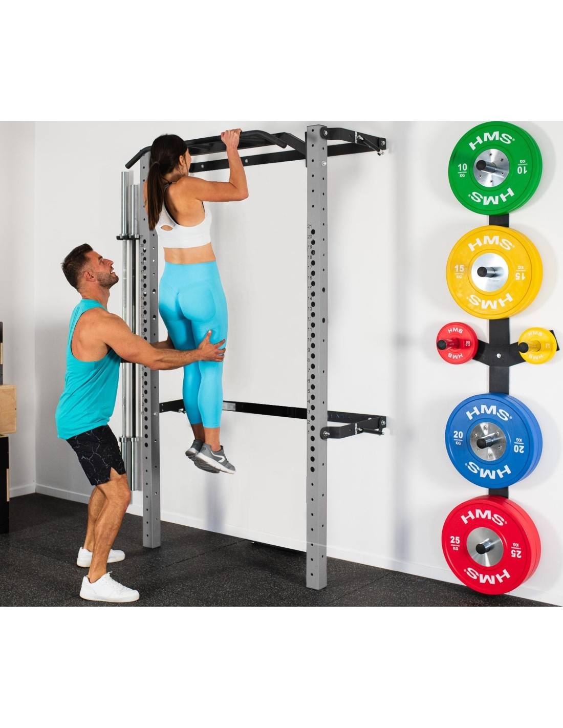 The KLT23 training cage from HMS is a piece of equipment that will satisfy the needs of strength training and fitness enthusiasts. Whether you're a beginner or advanced, you'll find everything you need for an effective and safe workout. The KLT23 will add variety to your workout routine and allow you to achieve even better results. You can also order special wall hangings for the set, which include STR28 grips and STR29 weight rack.