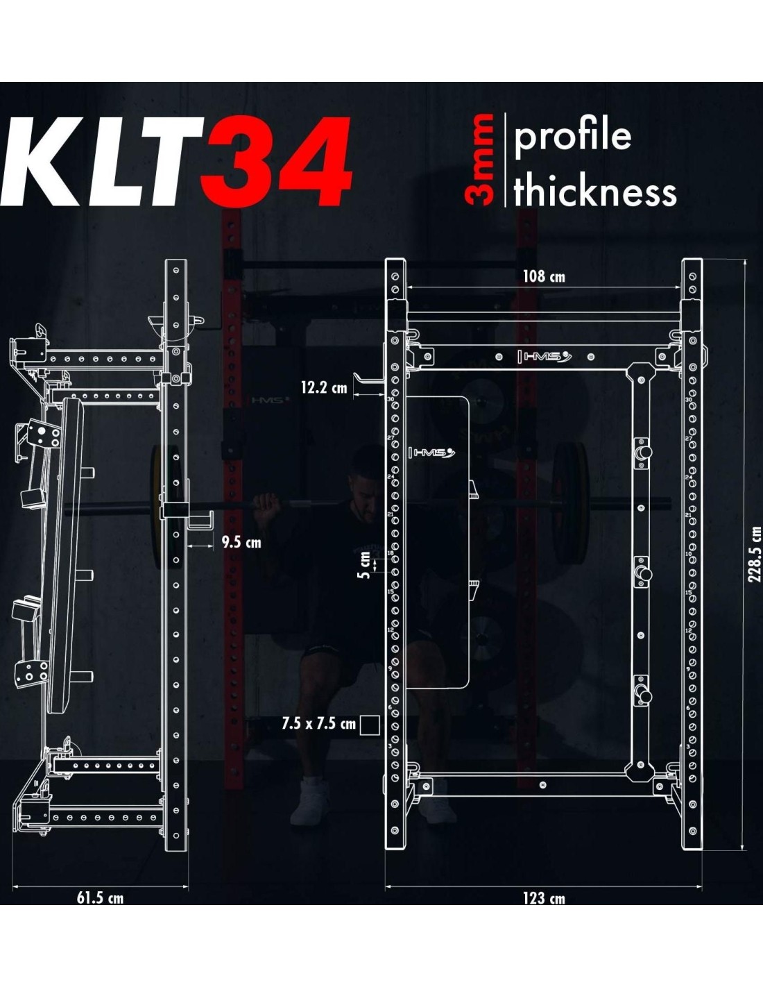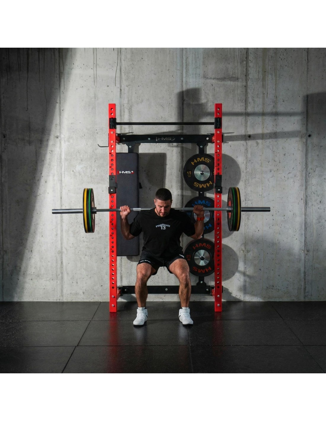 The solid steel construction of the KLT34 HMS Fitness rack is designed for intensive strength training: