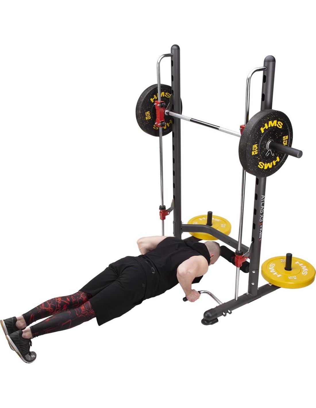 Atlas X3 HMS to klasyczna maszyna Smitha, która dodatkowo posiada elementy pozwalające na urozmaicenie treningu.
