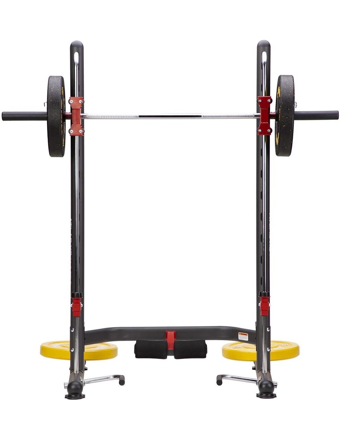 Maszyna Smitha X3 została wykonana z najwyższej jakości materiałów. Jest to stabilne urządzenie o maksymalnym dopuszczalnym obciążeniu 136 kg. Dzięki stojakom zamontowanym z tyłu produktu, z przechowywaniem talerzy obciążeniowych, nie będzie problemu. Radełkowana szyjka, doskonale leży w dłoni, a dzięki zaciskom i idealnie dopasowanej średnicy kołnierza szyjki, talerze nie kołyszą się podczas ćwiczeń.