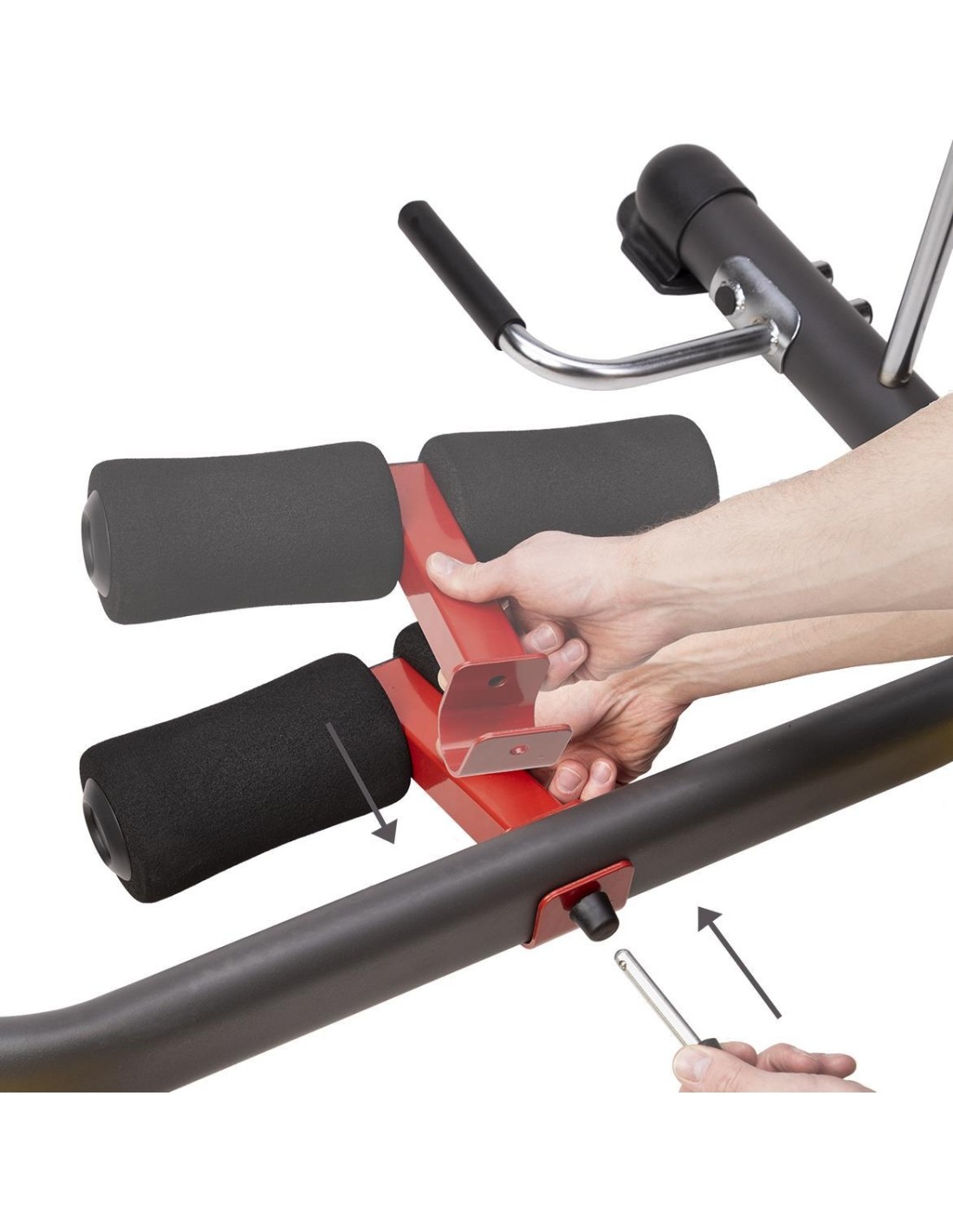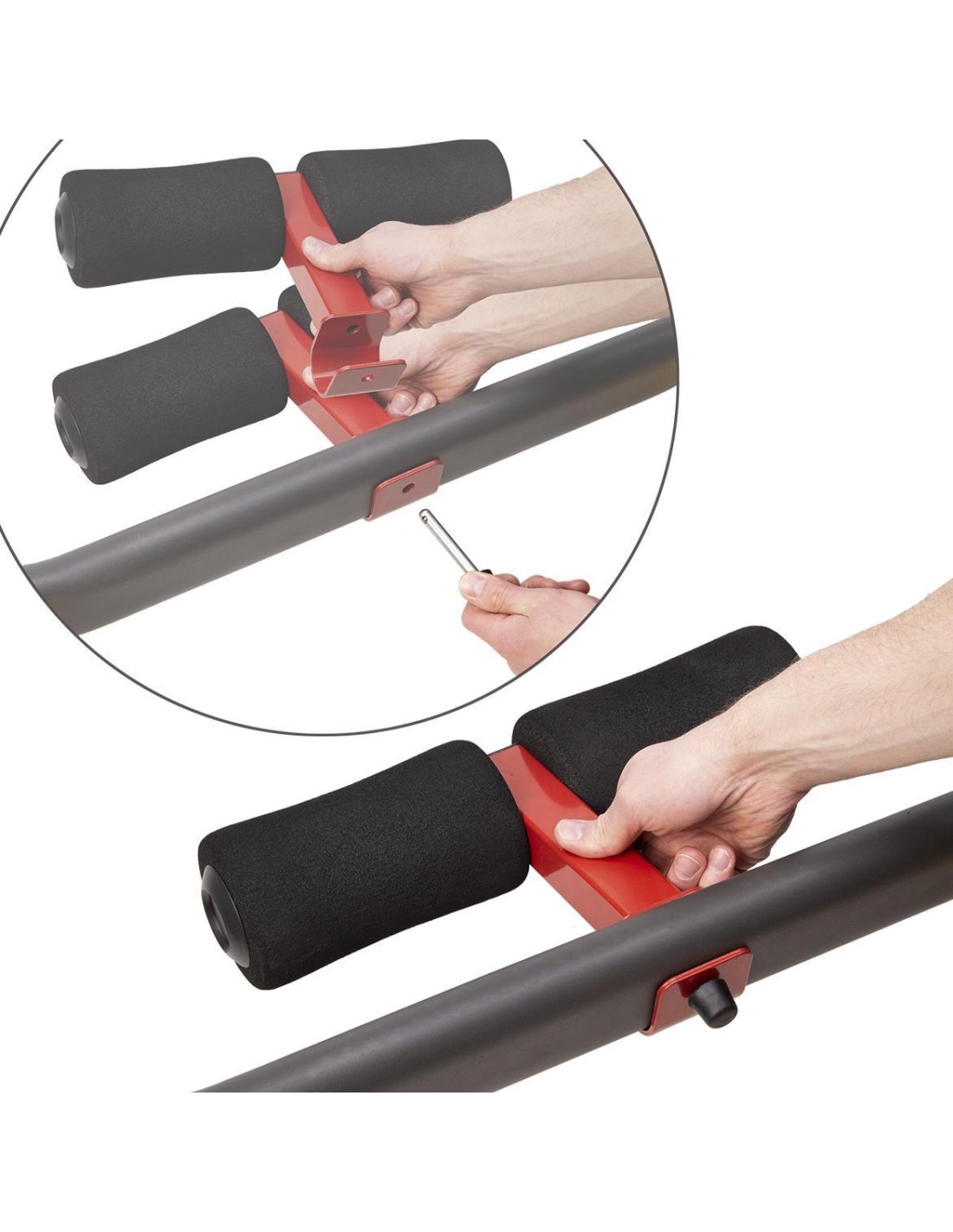 Za pomocą suwnicy można wykonywać ćwiczenia zarówno na dolne, jak i górne partie mięśni, ponieważ sprzęt jest przystosowany również do treningu z ławeczką. Klasyczne przysiady, wypady, wyciskanie na ławce i wiele innych, ale to nie wszystko w przypadku X3. Urządzenie posiada dodatkowo zamontowane podpórki do pompek oraz specjalny uchwyt na nogi, który pozwoli Ci na uginanie w pozycji leżącej. Takie rozwiązanie pozwoli Ci uwzględnić w treningu mięśnie brzucha i klatki piersiowej, jednocześnie obciążając własne ciało.
