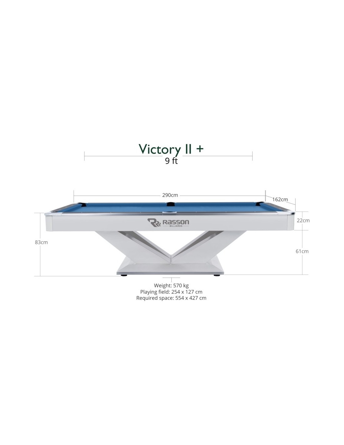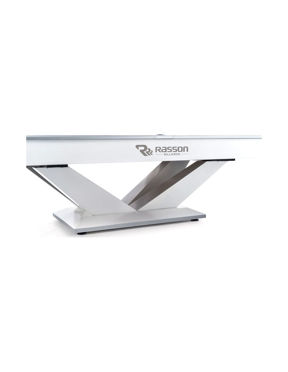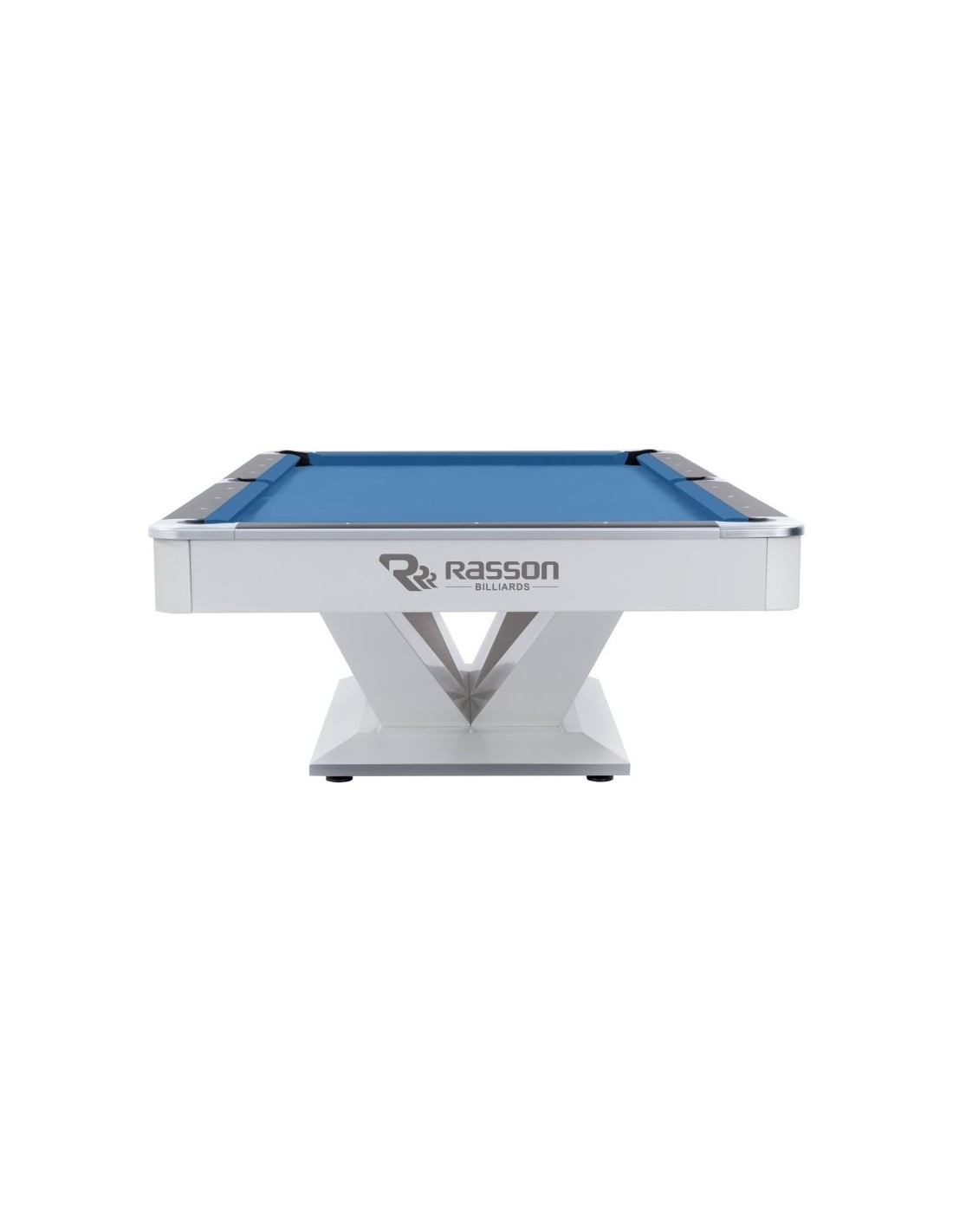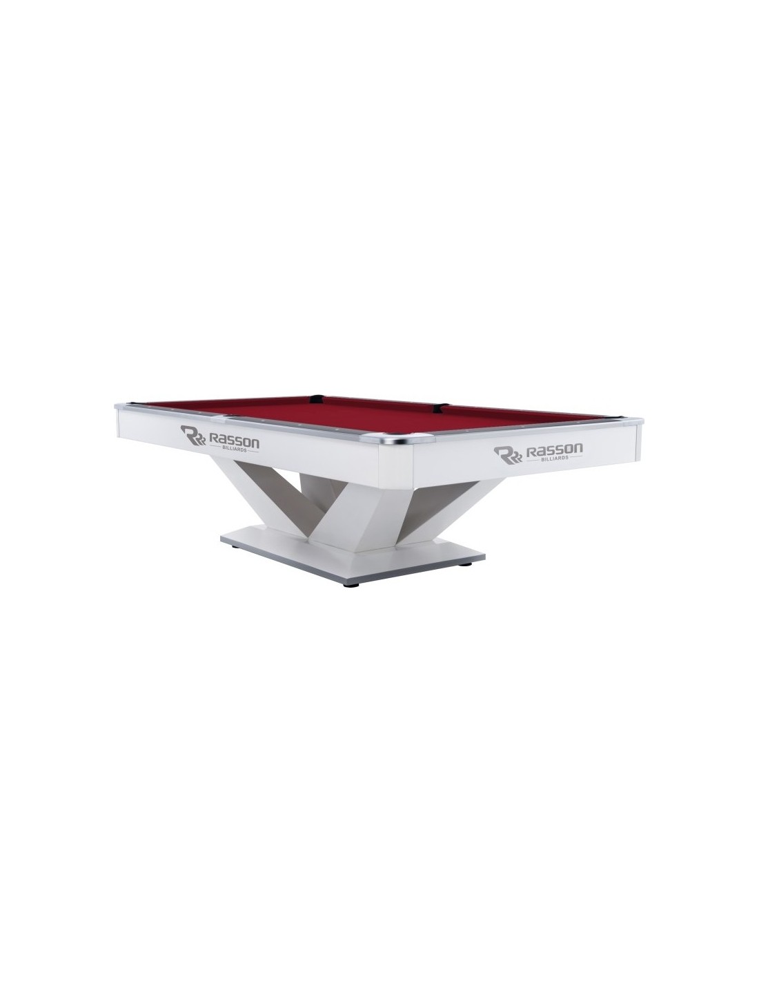 The Rasson Victory pool table features the unique pedestal and legs that look like a “V” from each side of the table. Victory is equipped with our own designed and patented SLS(Slate Leveling System) and LLS(Leg Leveling System) as well TPR material pockets.