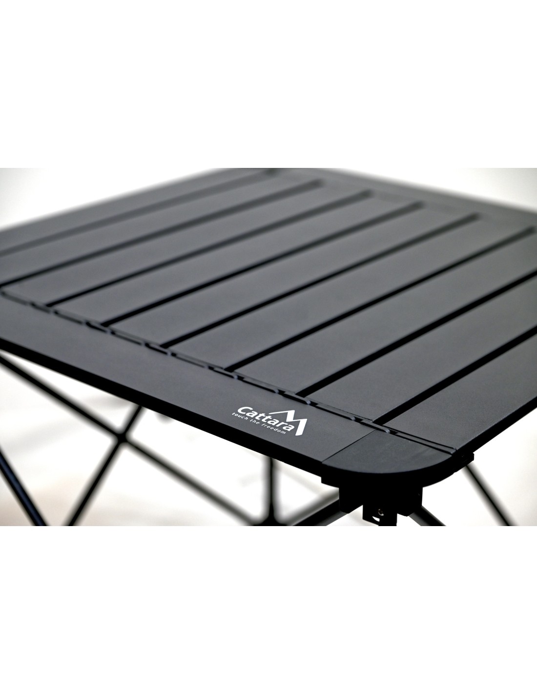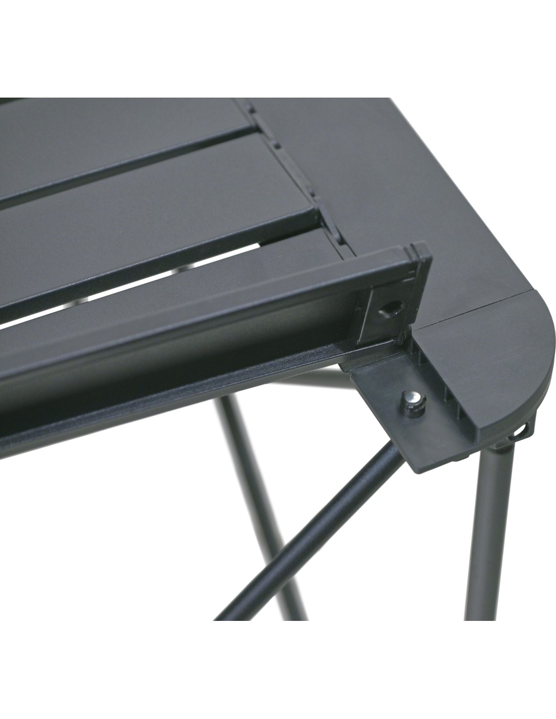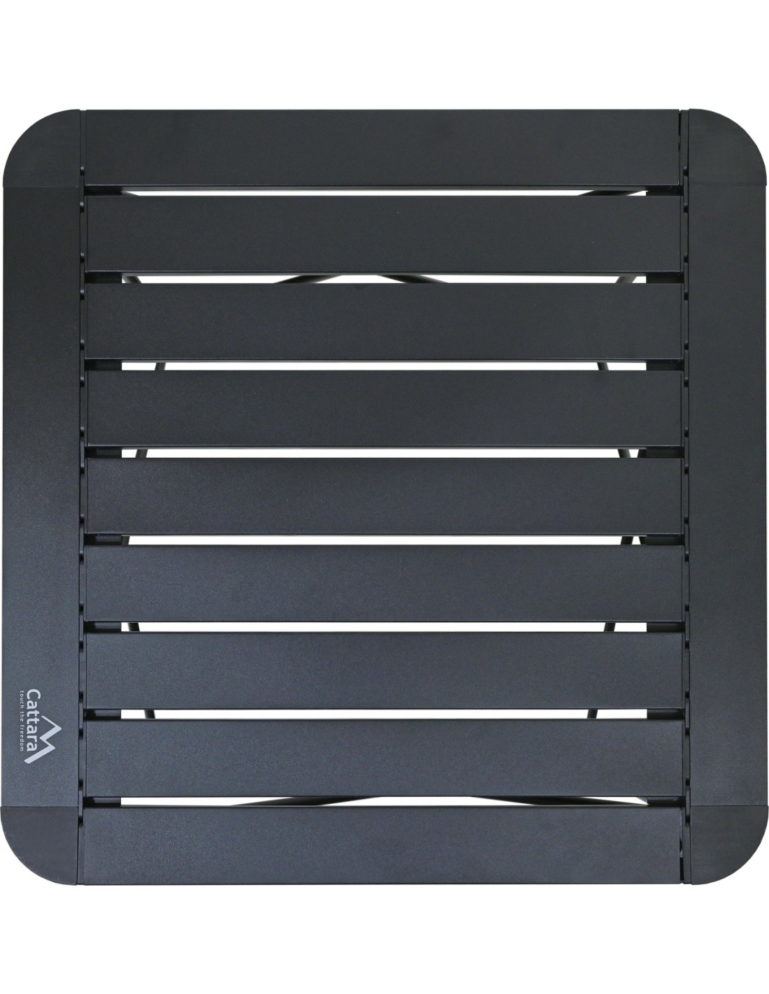 Stůl je opatřen lamelovou plochou s rozměry 52 x 52 cm ve výšce 46 cm a nabízí maximální nosnost až pro 50kg vybavení, potravin apod.