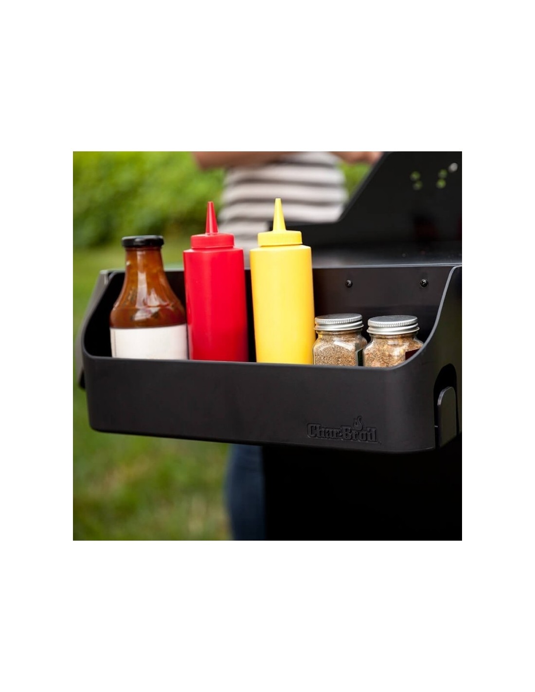 Ši patogi Char-Broil grilio lentynėlė su įrankių kabykla leis patogiai susidėti prieskonius ir susikabinti įrankius šalia jūsų grilio. Ši lentynėlė tinka daugumai Char-Broil grilių.