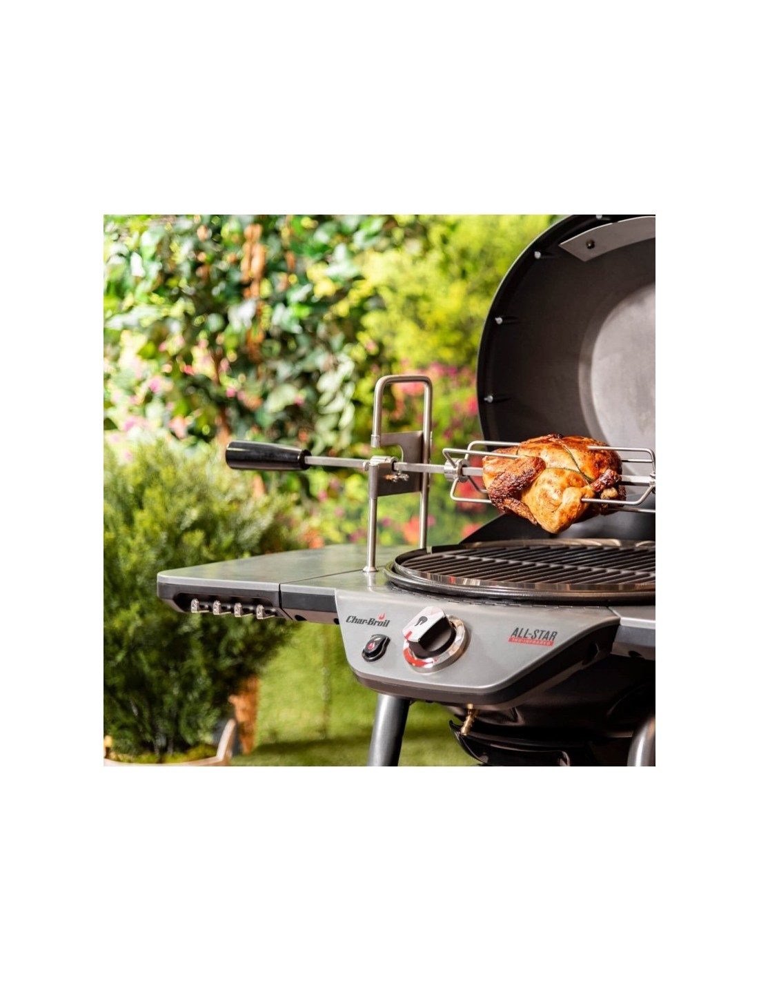Pasinaudodami sukamu nerūdijančio plieno All-Star iešmu Rotisserie, galėsite iškepti didelius produktus net ir turint mažai vietos. Dėka integruoto motoro, iešmas nuolatos yra sukamas, tad gaminamas maistas iškepa tolygiai.Iešmo sistema tinka naudoti su All-Star dujiniu arba All-Star elektriniu griliumi.Specifikacijos:Medžiaga: nerūdijantis plienasMatmenys: 12 x 3,04 x 90 cm