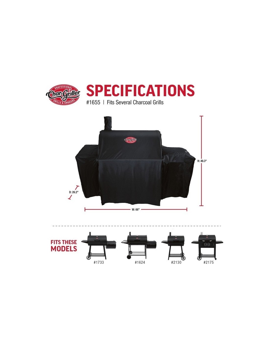 Apsaugokite savo kepsninę nuo nepalankių oro sąlygų visus metus naudodami šį kepsninės uždangalą. Pagamintas iš tvirtos medžiagos, kad būtų atsparus plyšimui, blukimui, lietuis ir net paukščiams! Lengvas, bet patvarus uždangalas lengvai užsideda, todėl jūsų kepsninė išliks geros būklės metai iš metų, prailginkite savo "Char-Griller" kepsninės tarnavimo laiką!Šis uždangalas suprojektuotas, kad tiktų modeliams su šonine rūkykla ir be jos.Taip pat ir senesniems Char Griller modeliams - Smoking Pro bei Super Pro.