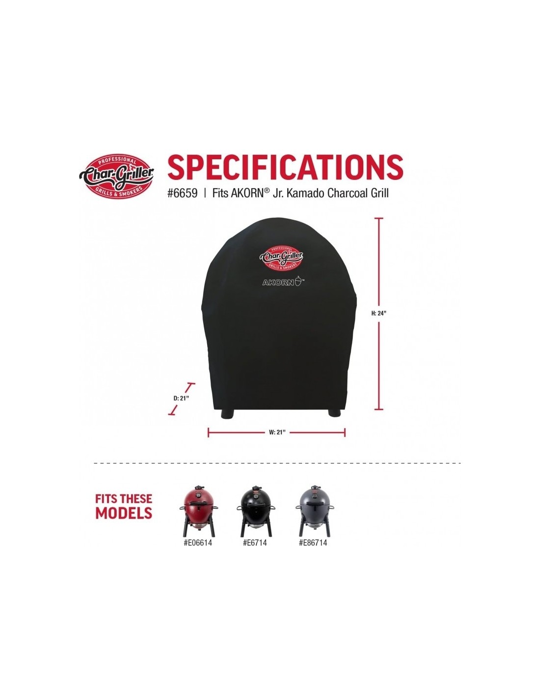 Apsaugokite savo AKORN kepsninę su aukštos kokybės "Char-Griller AKORN JR Grill Cover". Uždangalas yra sukurtas specialiai AKORN modeliams, užtikrinantis ilgaamžiškumą ir apsaugą nuo įvairių oro sąlygų.Savybės: