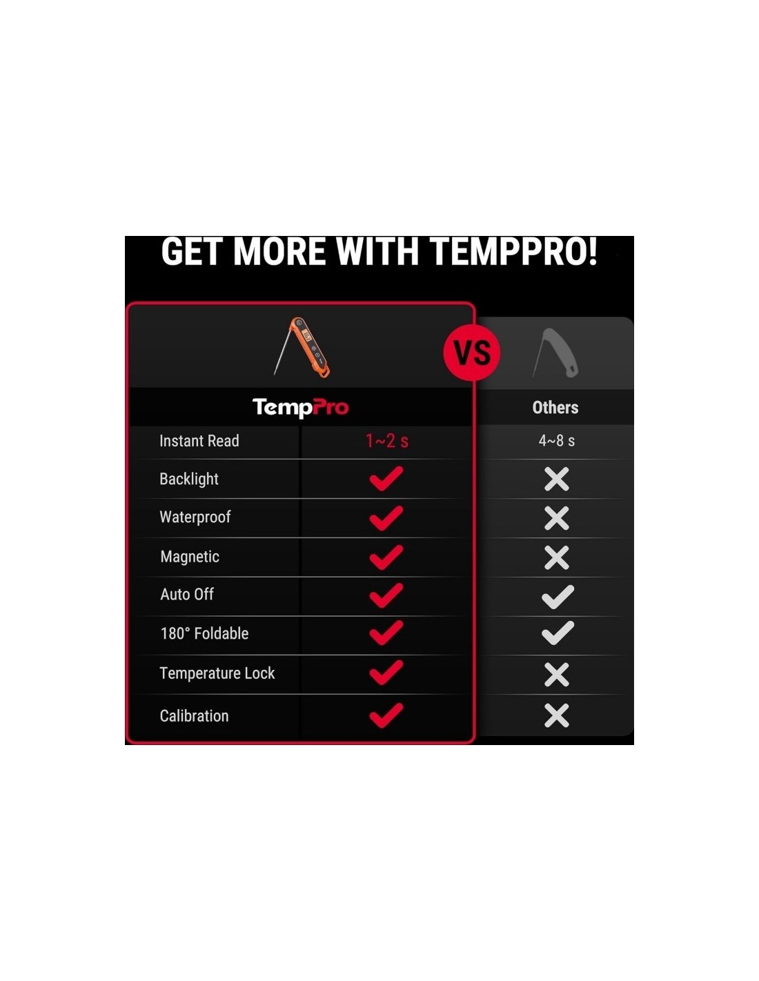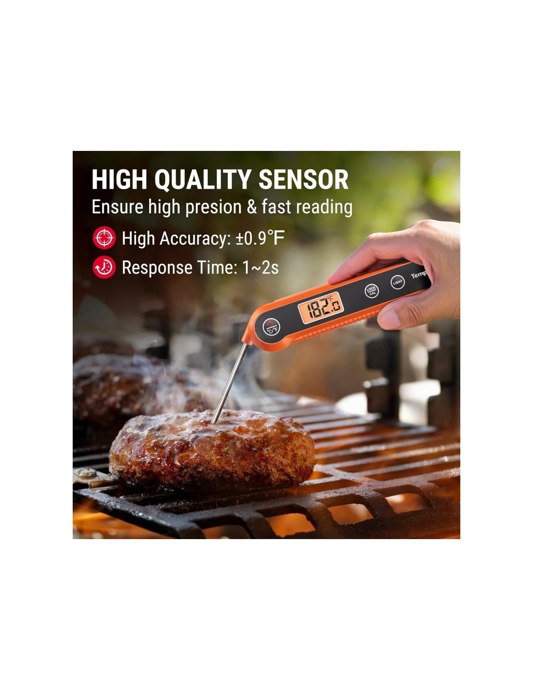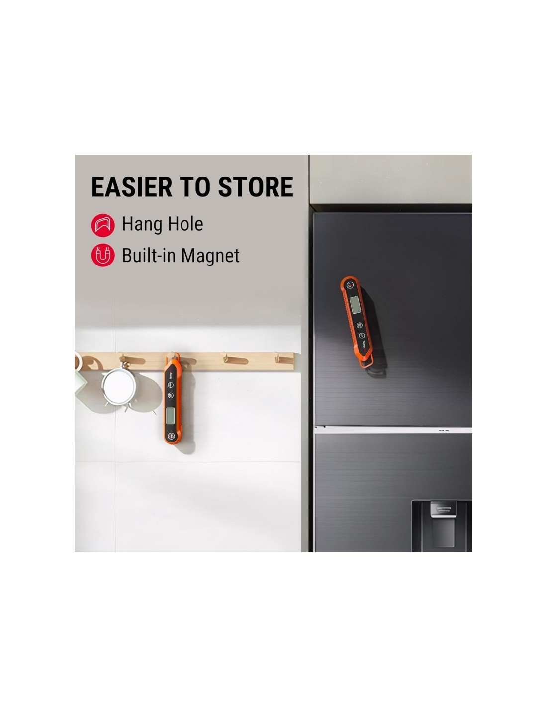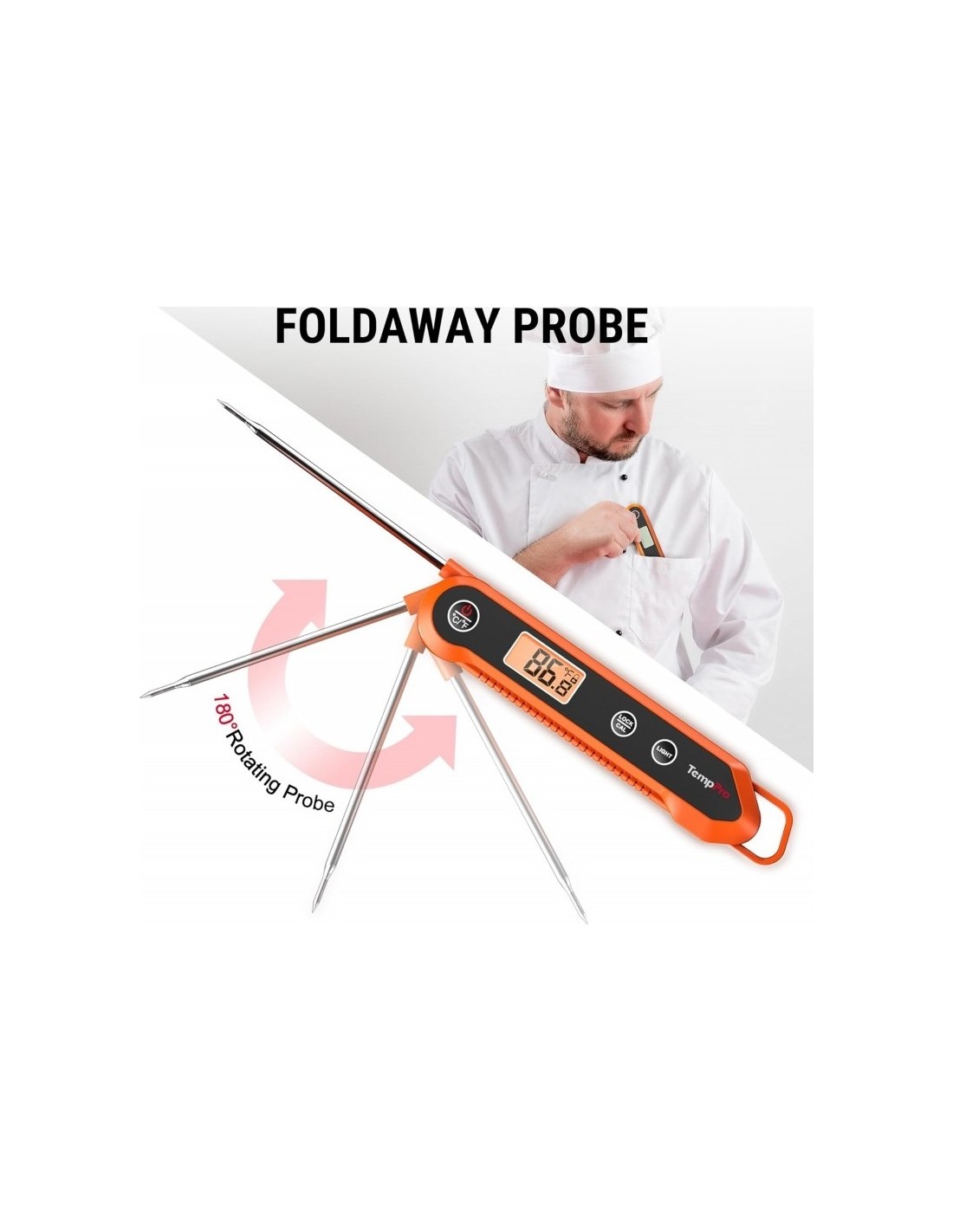 Kepkite mėsą tiksliai su ThermoPro TP-03B! Šis kokybiškas skaitmeninis termometras Jums pateiks tikslius temperatūros rodmenis per 4 sek. kiekvieną kartą. Termometras yra sulenkiamas, turi magnetinę nugarėlę ir kabliuką, tad jį galima pakabinti ant kepsninės ar virtuvinės spintelės. TP-03B yra puikus pasirinkimas tiek patyrusiems tiek pradedantiesiems kepėjams. ITIN GREITAS: Momentinis termometras turi 10 cm nerūdijančio plieno zondą, kuris su itin jautriu jutikliu parodo temperatūrą per 4 sekundes; TIKSLUS NUSKAITYMAS: Termometro temperatūros diapazonas -50 ~ 300°C; IŠMANUS DIZAINAS: Skaitmeninis mėsos termometras automatiškai išsijungia, jeigu jis nėra naudojamas 10 min (maitinamas AAA tipo baterija, baterijos įeina į komplektą).
