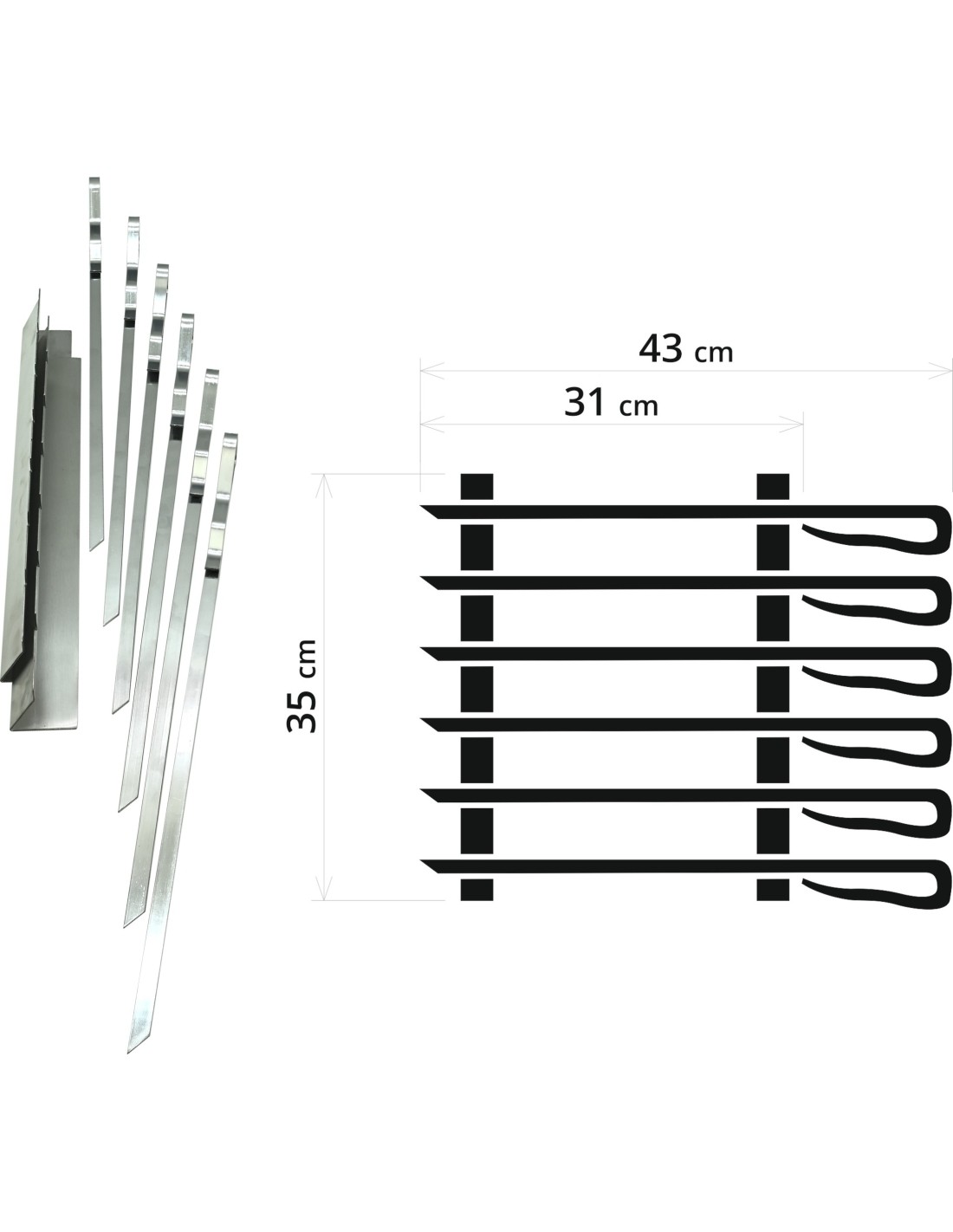 Zestaw do grillowania dużych szaszłyków, 43 cm, 6 szt.