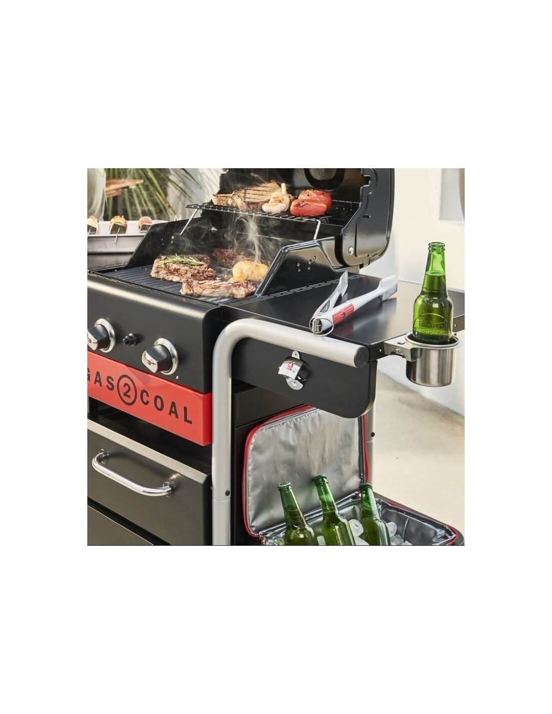 Su šiuo gėrimų laikikliu kepdami karštą vasaros dieną, visada rasite kur pasidėti savo šaltą gėrimą. Tvirtas perforuotas butelių laikiklis tvirtinamas prie jūsų Char-Broil grilio šoninės lentynos. Taip pat yra integruotąs butelio atidarytuvas. Specifikacijos: Aukštis (cm) 8.5 Plotis (cm) 15 Ilgis (cm) 9.9