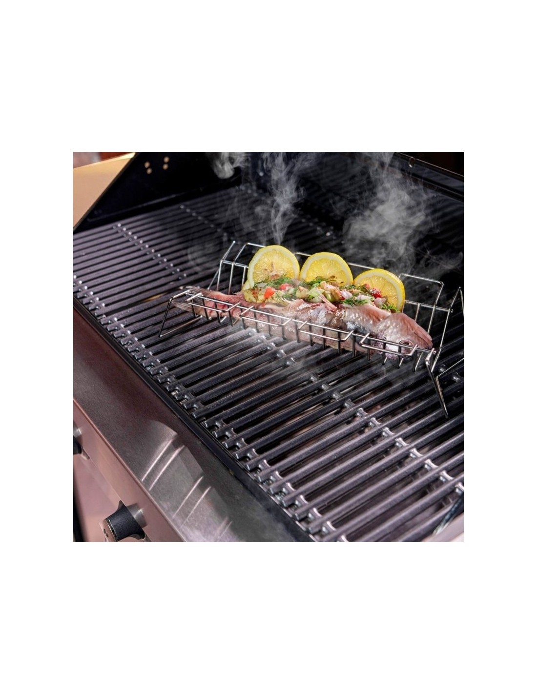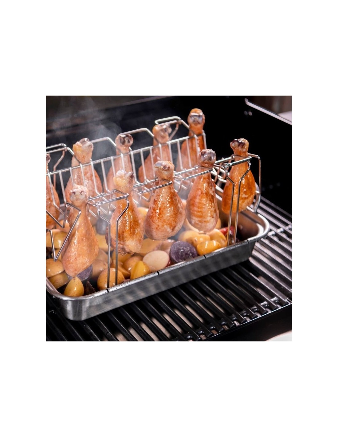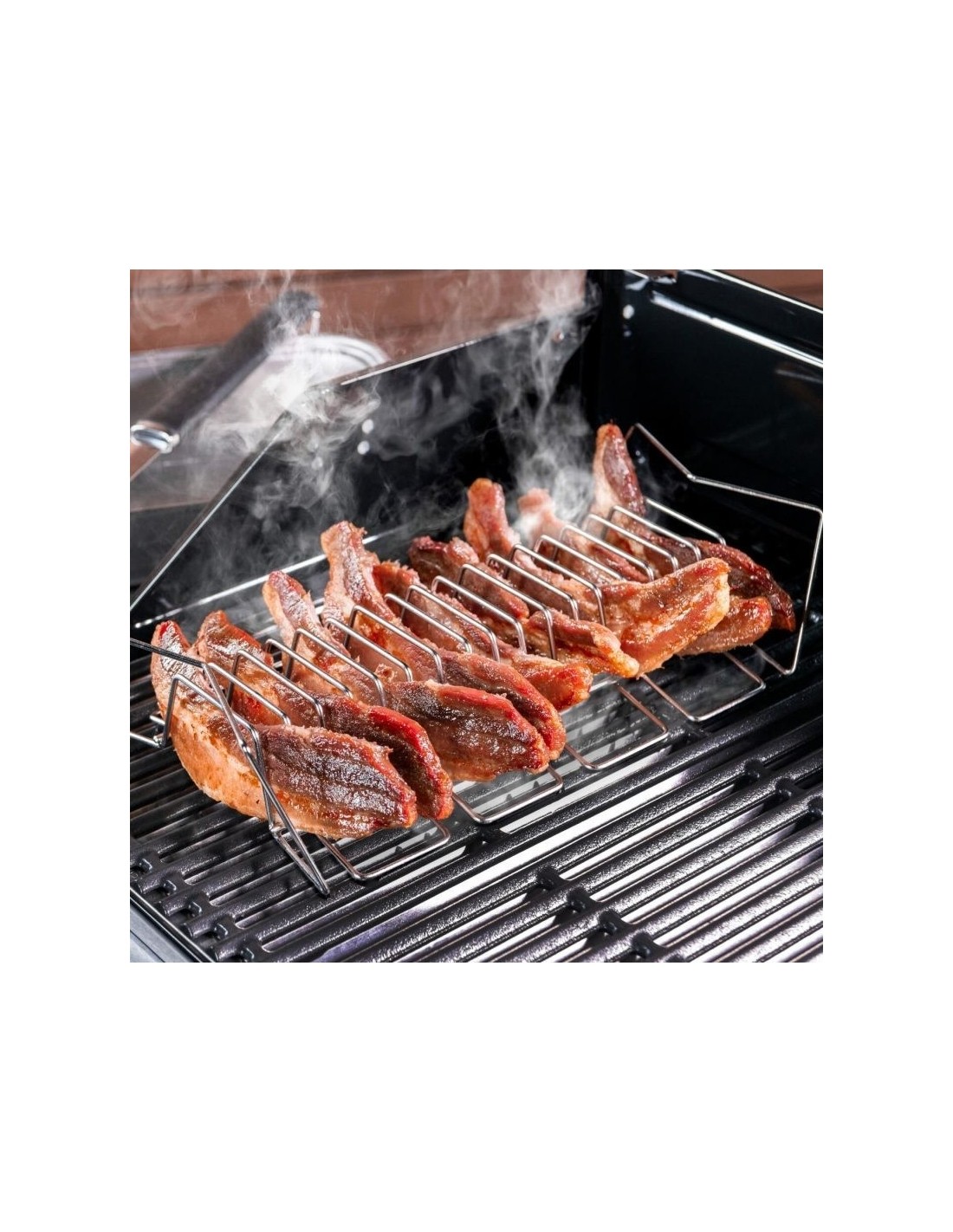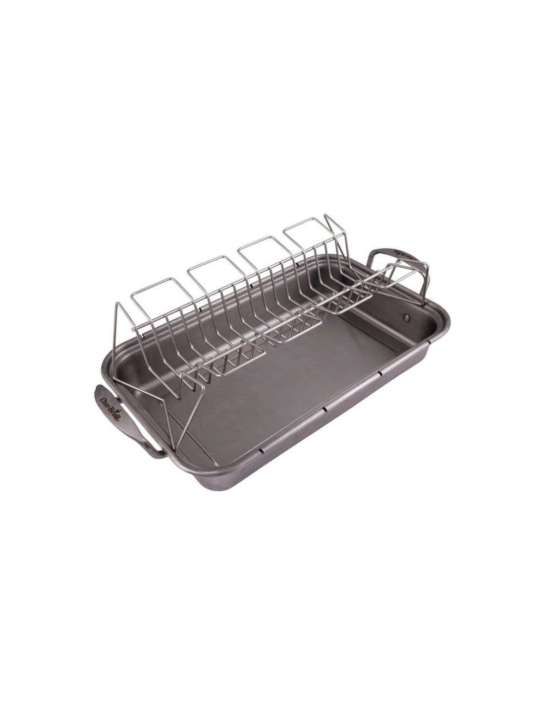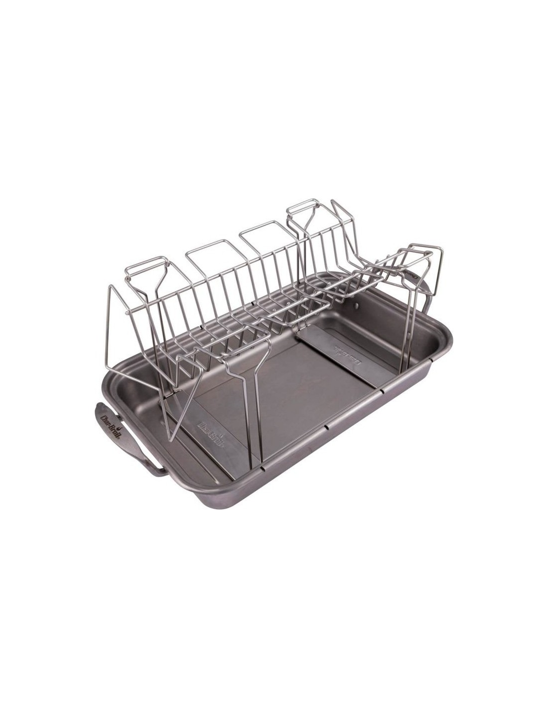 Su šiomis universaliomis grotelėmis Char-broil, galėsite kepti bei rūkyti šonkaulius, vištos kulkšneles. Grotelės pagamintos iš kokybiško nerūdijančio plieno, todėl yra ilgaamžės. Dubuo į komplektą neįeina.