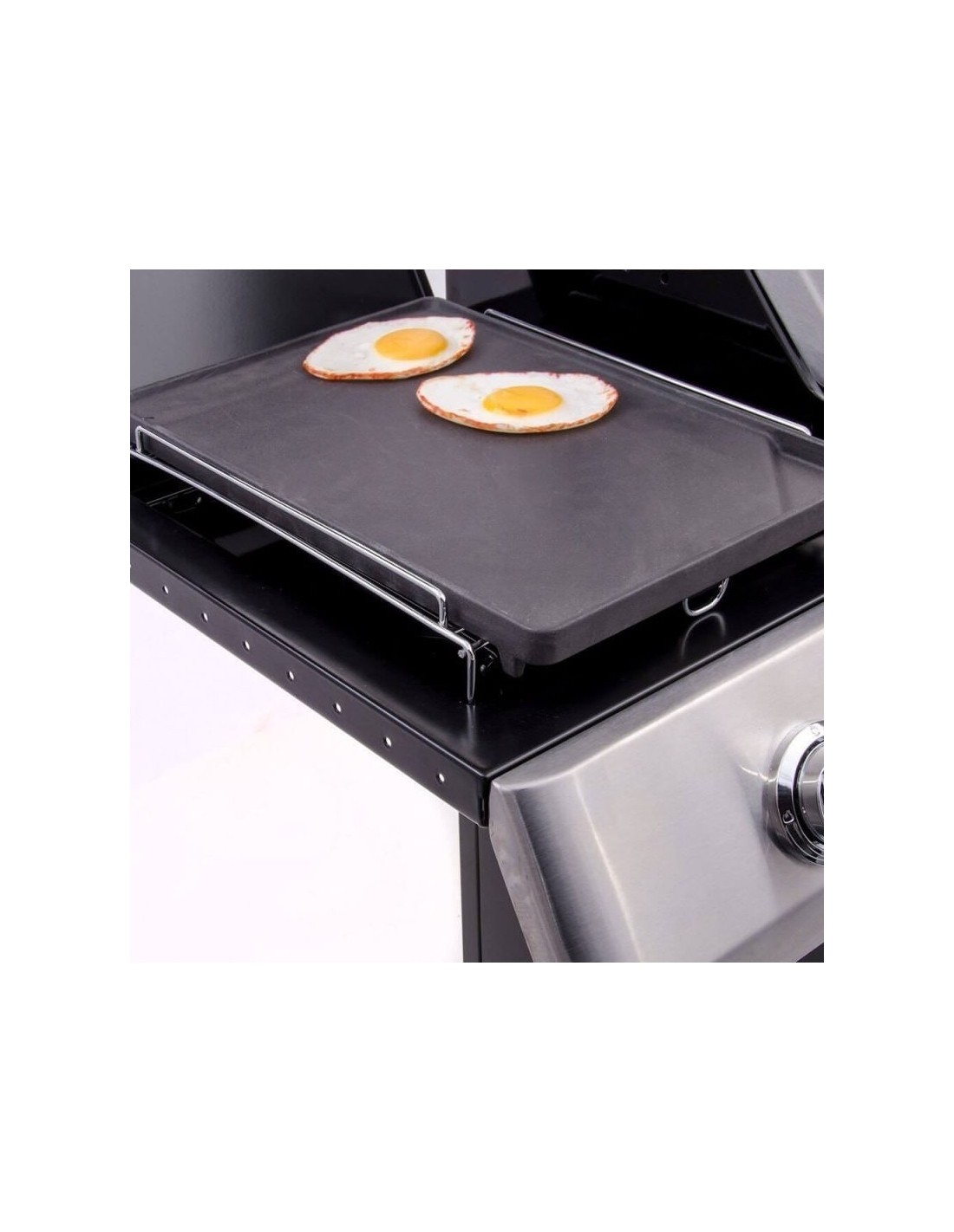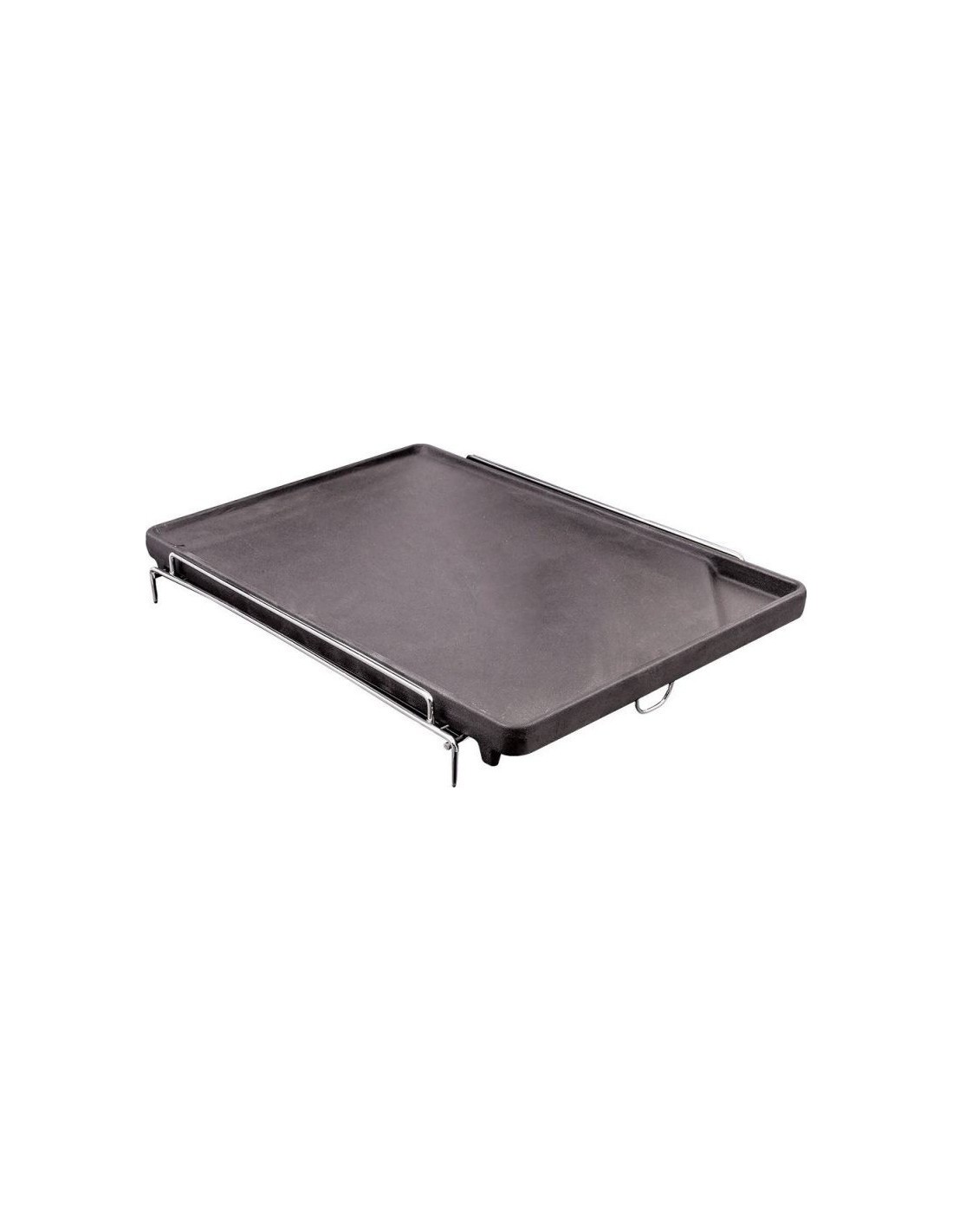 Greitai ir skaniai išsikepkite blynus, kiaušinienę ir kitus patiekalus su šia, iš ketaus pagaminta plokštuma. Pagrindinė plokštumos funkcija yra naudojama kepimui ant dujinio griliaus, šoninio degiklio, tačiau ji yra universali, todėl jos naudojimą riboja tik jūsų vaizduotė. Plokštumos matmenys yra 37x25x13 cm ir ji komplektuojama su nerūdijančio plieno pakyla.