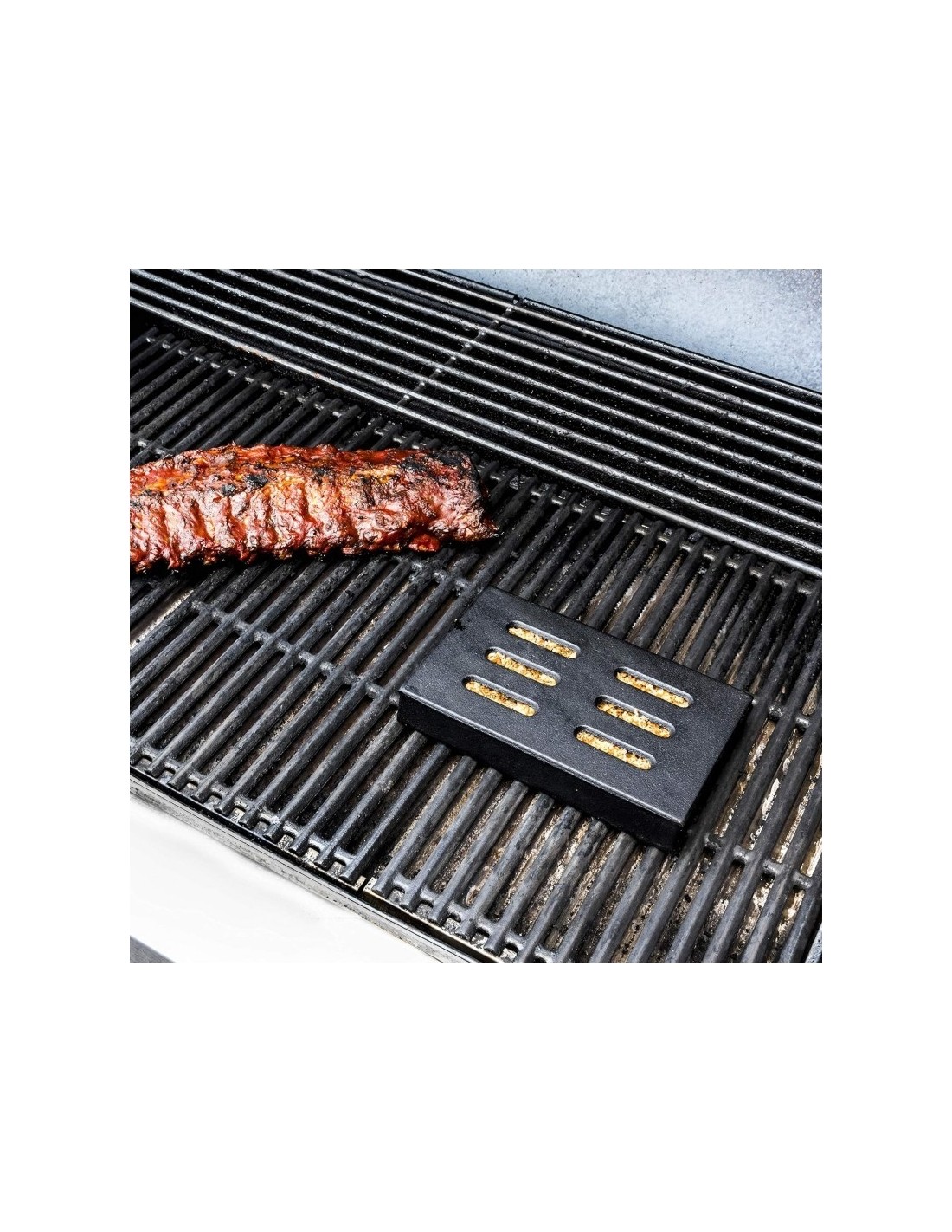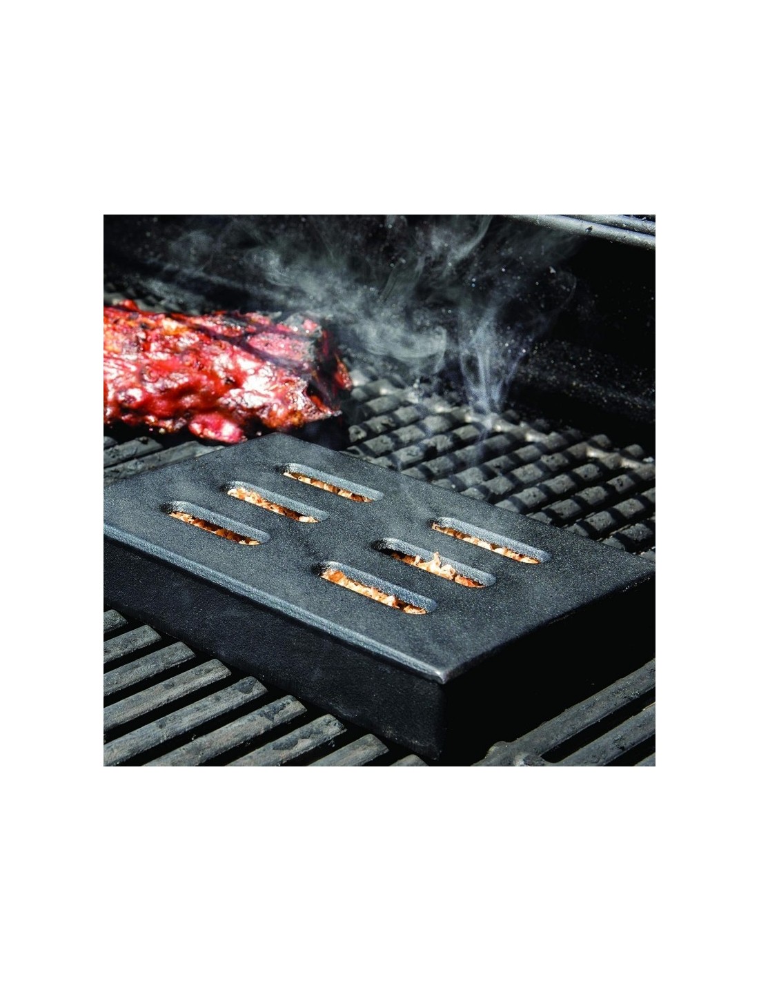 Char-Broil ketaus dėžutė rūkymui - priedas leisiantis sutaupyti medžio drožles su kiekvienu rūkymu. Išmirkę medžio skiedras, sudėkite jas į dėžutę. Dėžutę galite naudoti su angline ar malikine kepsnine darant ilgus mėsos rūkymus - taip drožlės smilks, o ne degs. Tokiu būdu vieno maišelio medžio drožlių užteks kur kas ilgiau. Dėžutę taip pat galima naudoti ir su dujiniais griliais. Pagaminta iš ketaus, dėl to tarnaus visą gyvenimą!