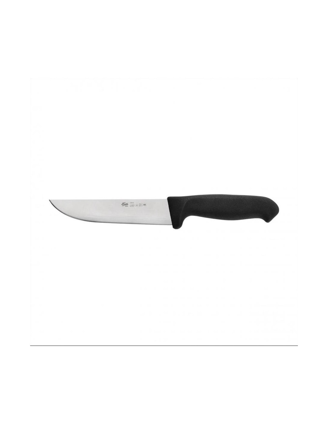 The featured knife has a deeply textured polyamide handle for good grip and control while working. The 160 mm long rigid blade is made of stainless steel by cold-rolling method. It was hardened by prolonged freezing at temperatures below minus 80°C. The knife is very easy to sharpen. It is recommended by the manufacturer for processing pork and lamb.