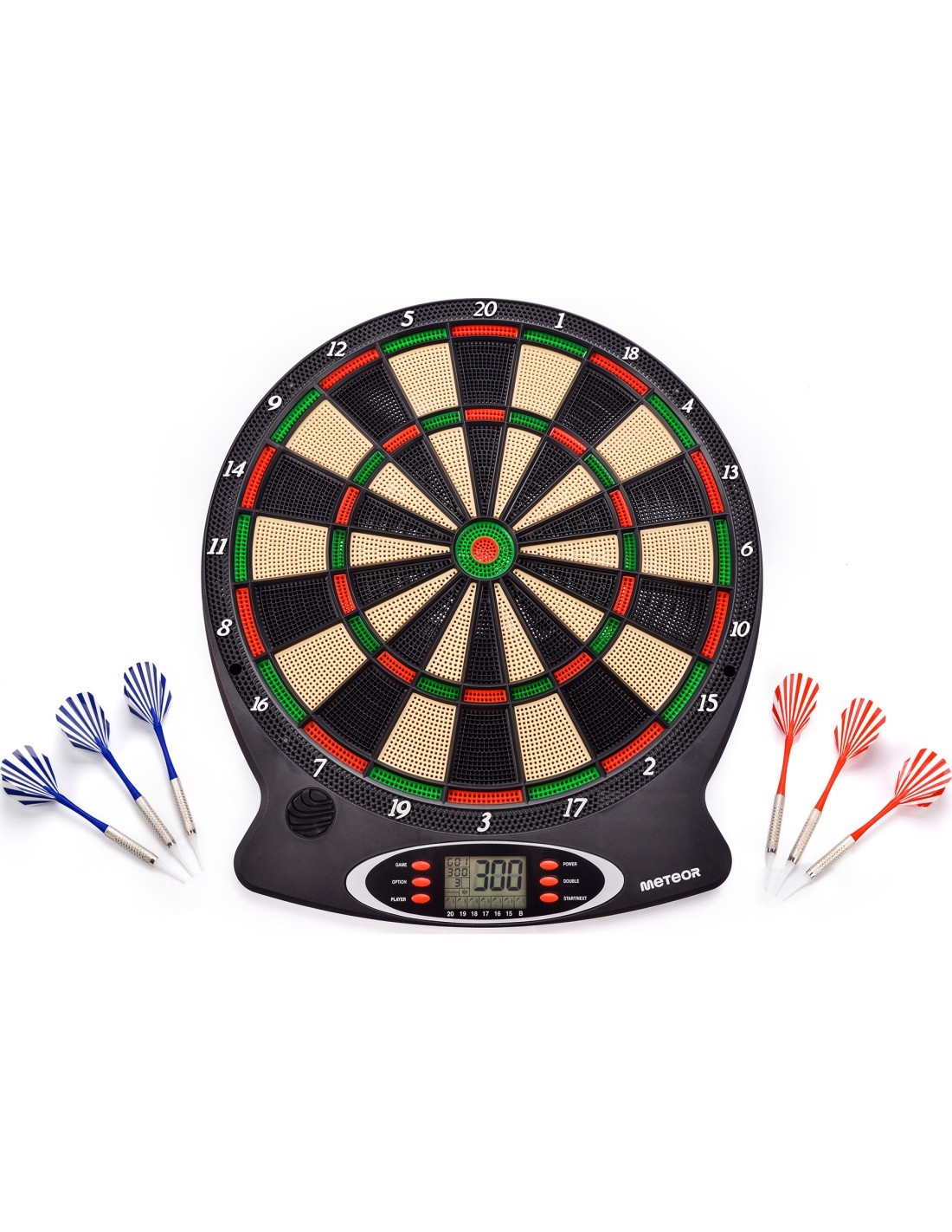 Tarcza do darta Meteor urozmaici wolny czas. Rzutki w zestawie. Model posiada wyświetlacz LCD.