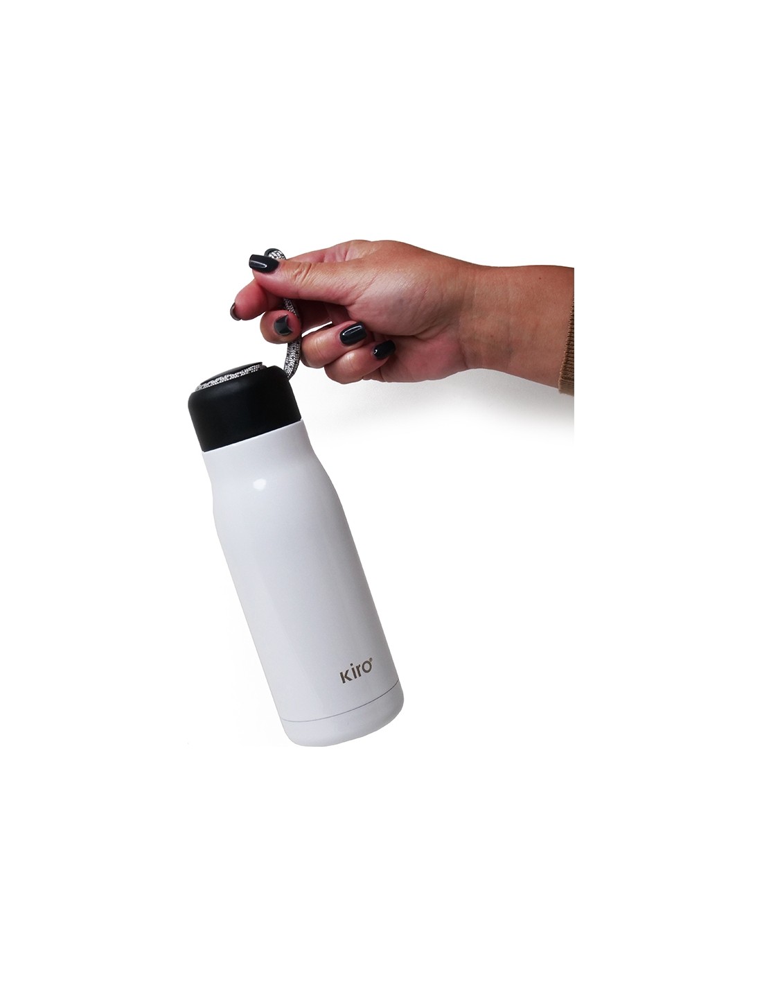 Termogertuvę „KIRO“ galėsite dar patogiau nešiotis su savimi. Tam skirta speciali itin patvari virvutė, už kurio termogertuvę galėsite neštis rankoje, prisikabinti prie kuprinės ar krepšio.