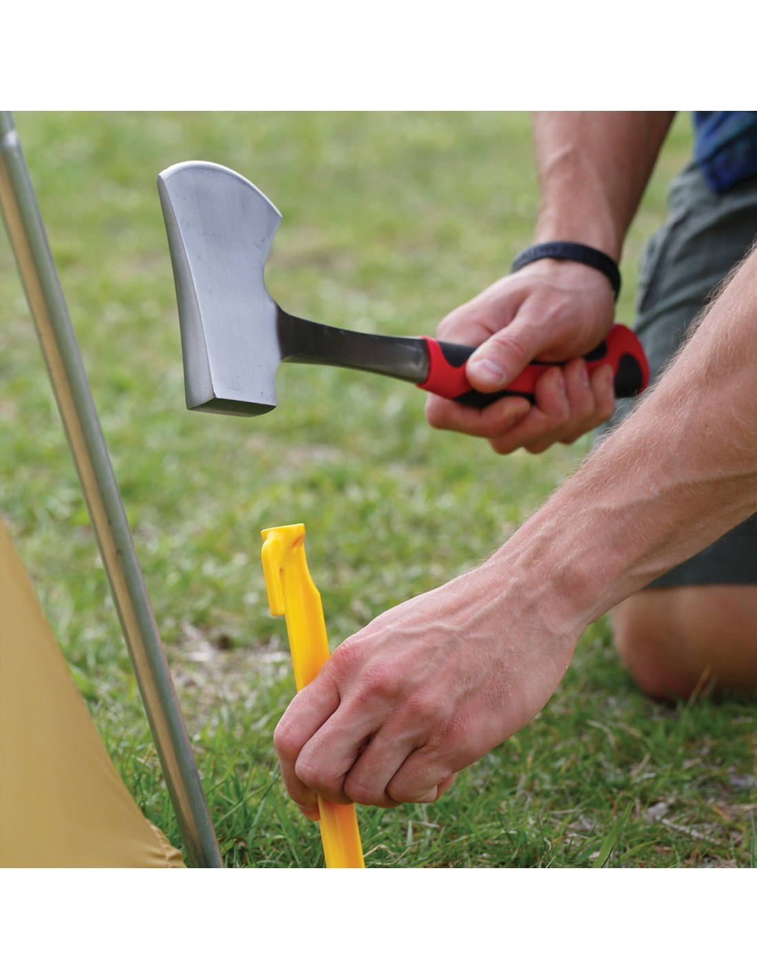 Podstawowy element każdego zestawu narzędzi kempingowych, ta siekiera z wytrzymałej stali jest świetnym narzędziem do wielu zadań na kempingu lub na podwórku. Konstrukcja full-tang i gumowane uchwyty sprawiają, że siekiera jest równie wygodna, co poręczna. Dołączona nylonowa osłona z szlufką na pasek.