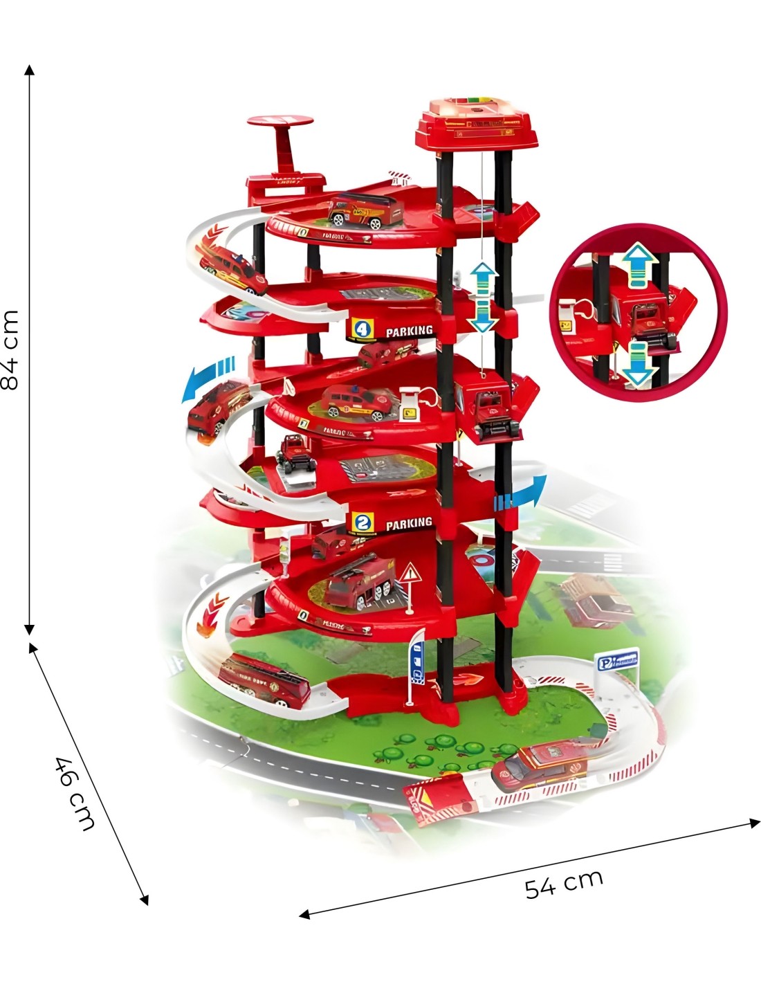 Garaż samochodowy to zabawka, która spodoba się wszystkim małym kierowcom. Dzięki aż 5 piętrom, Twój mały miłośnik motoryzacji spędzi długie godziny zabawy na parkowaniu i manewrowaniu swoimi autami, a realistyczne elementy zachęcą do tworzenia własnych historii. Garaż to z całą pewnością świetne uzupełnienie domowej kolekcji samochodów, dzięki niemu zabawa będzie dawała jeszcze więcej frajdy.