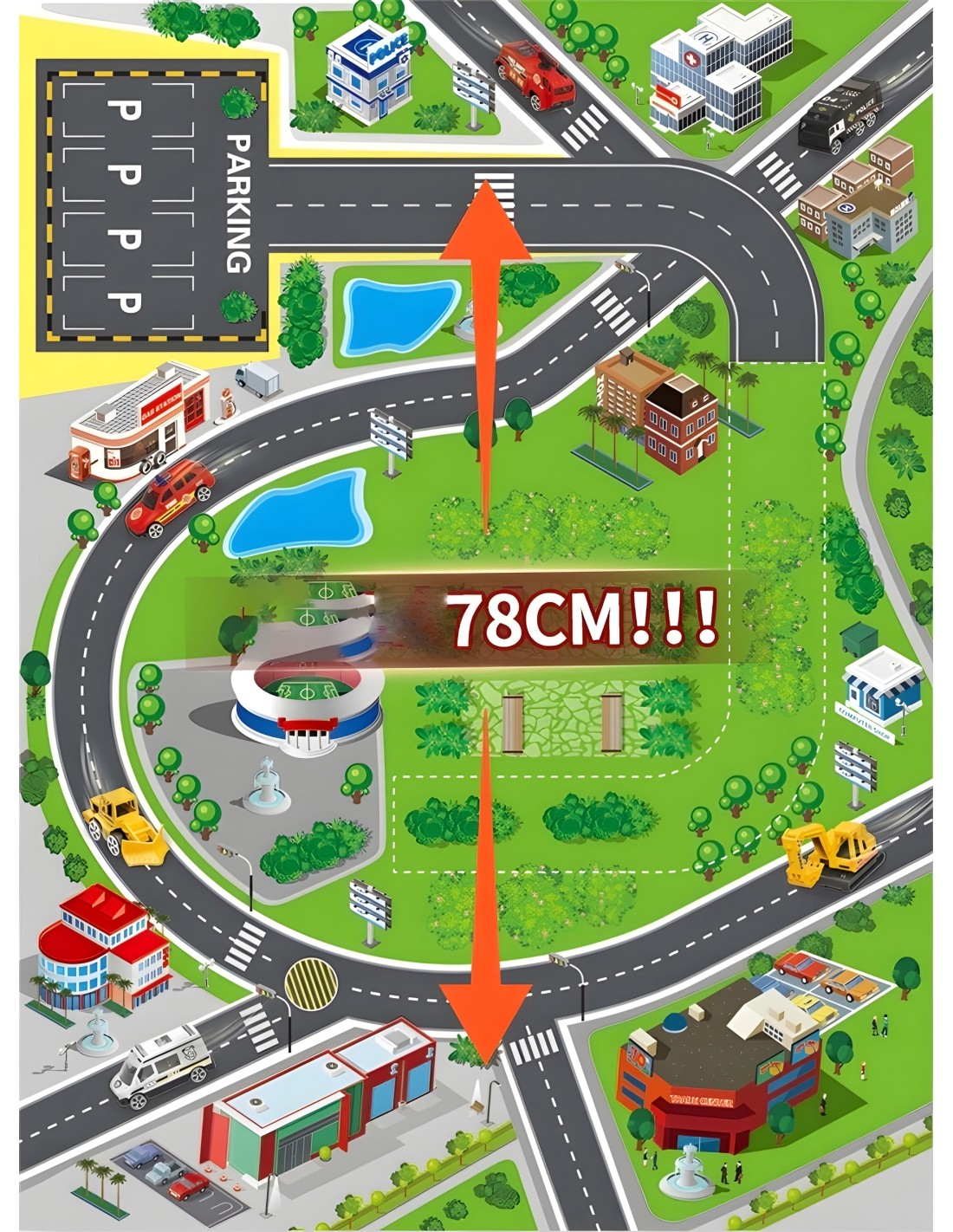 W zestawie z garażem znajdują się 2 samochodziki, helikopter oraz mata z miastem.