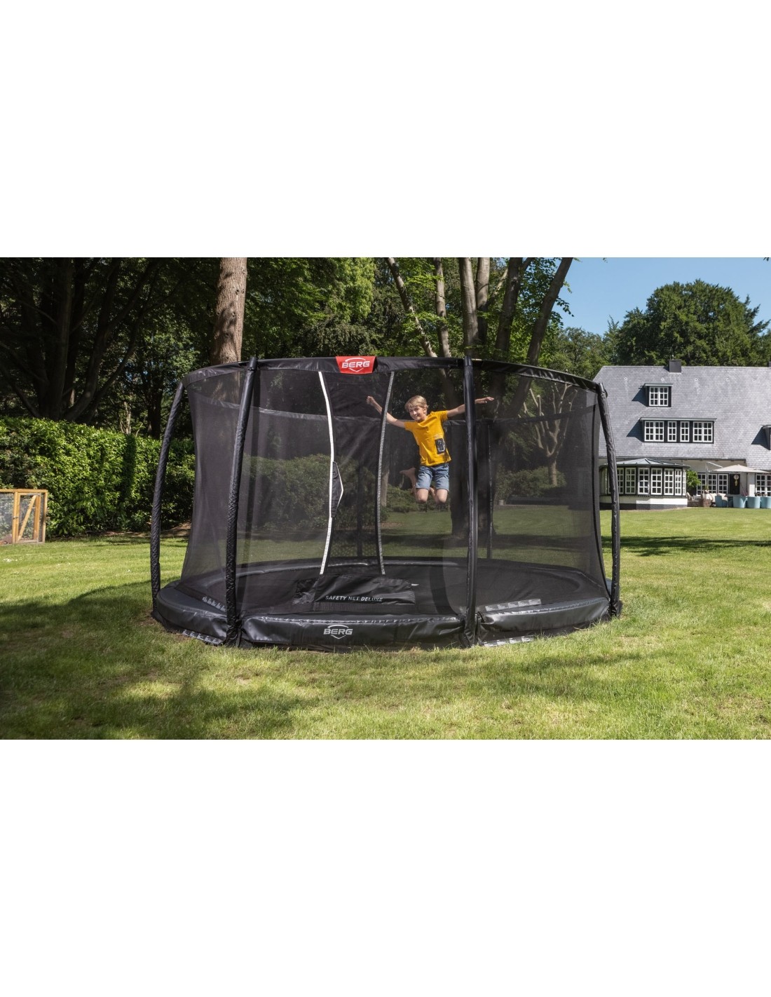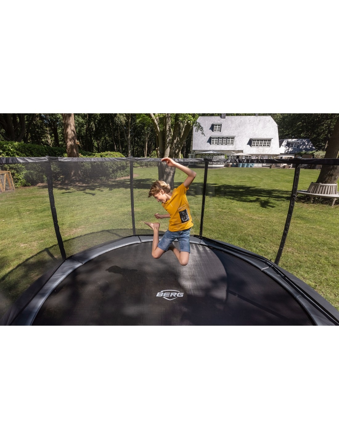 Skakanie na trampolinach to radosne doświadczenie, ale najważniejsze jest bezpieczeństwo. Z tego powodu BERG kładzie duży nacisk na testowanie swoich produktów. Wysokie i solidne siatki BERG gwarantują bezpieczne skakanie, nawet jeśli skacze się najwyżej, jak to możliwe. Wszystkie produkty BERG mają najwyższe międzynarodowe certyfikaty bezpieczeństwa. BERG przeprowadza niezależne testy TUV, Intertek i AiB Vincotte oraz testuje odporność materiałów na warunki pogodowe. Trampoliny są wyposażone w bardzo mocne maty do skakania (odporne na promieniowanie UV i przemakanie), umocowane na solidnych sprężynach. Krawędzie są idealnie dopasowane do maty, co zwiększa bezpieczeństwo i komfort skakania. Dzięki wzmocnieniu spawów ramy oraz zastosowaniu stalowych połączeń, konstrukcja jest jeszcze bardziej stabilna. Wszystkie metalowe elementy są ocynkowane wewnątrz i na zewnątrz, dzięki czemu nie rdzewieją.