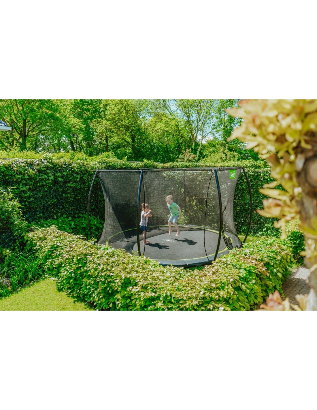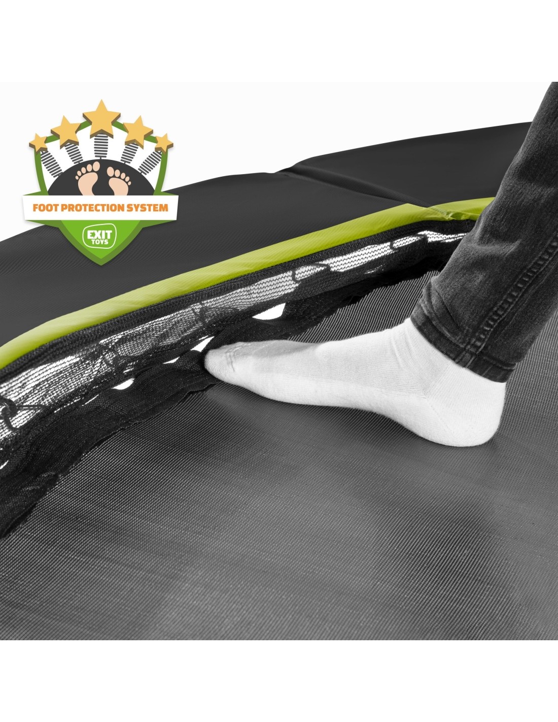 . Wysokiej jakości krawędź ochronna całkowicie zakrywa ocynkowane sprężyny i jest wyposażona w specjalnie opracowany system ochrony stóp, aby stopa nie mogła znaleźć się między sprężynami. Wytrzymałe sprężyny gwarantują dobrą siłę odbicia. Rama trampoliny Silhouette jest ocynkowana i malowana proszkowo, dzięki czemu rdza nie ma szans. Przeżyj niekończącą się zabawę w skakanie na trampolinach EXIT Silhouette!